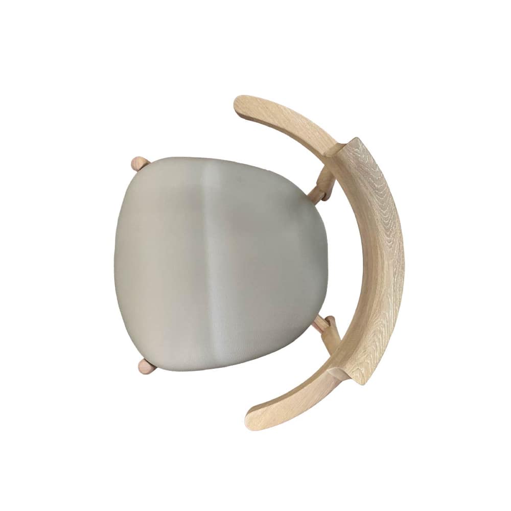 ◆セミアームタイプなのでテーブルに引っかけて浮かすことが可能。◆背もたれは背中にフィットする丸み形状。