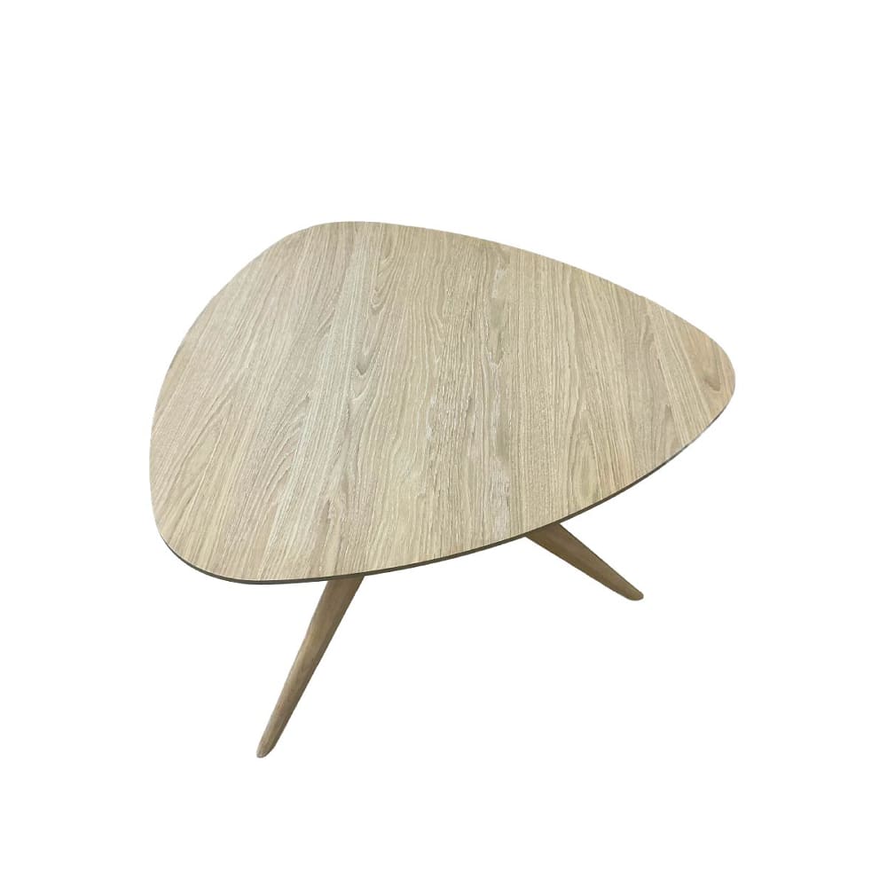 ◆天板にはホワイトオーク突板を使用。高級感のある木目が特徴。◆脚にはラバーウッド材を使用。中央脚なので出入りがしやすい。