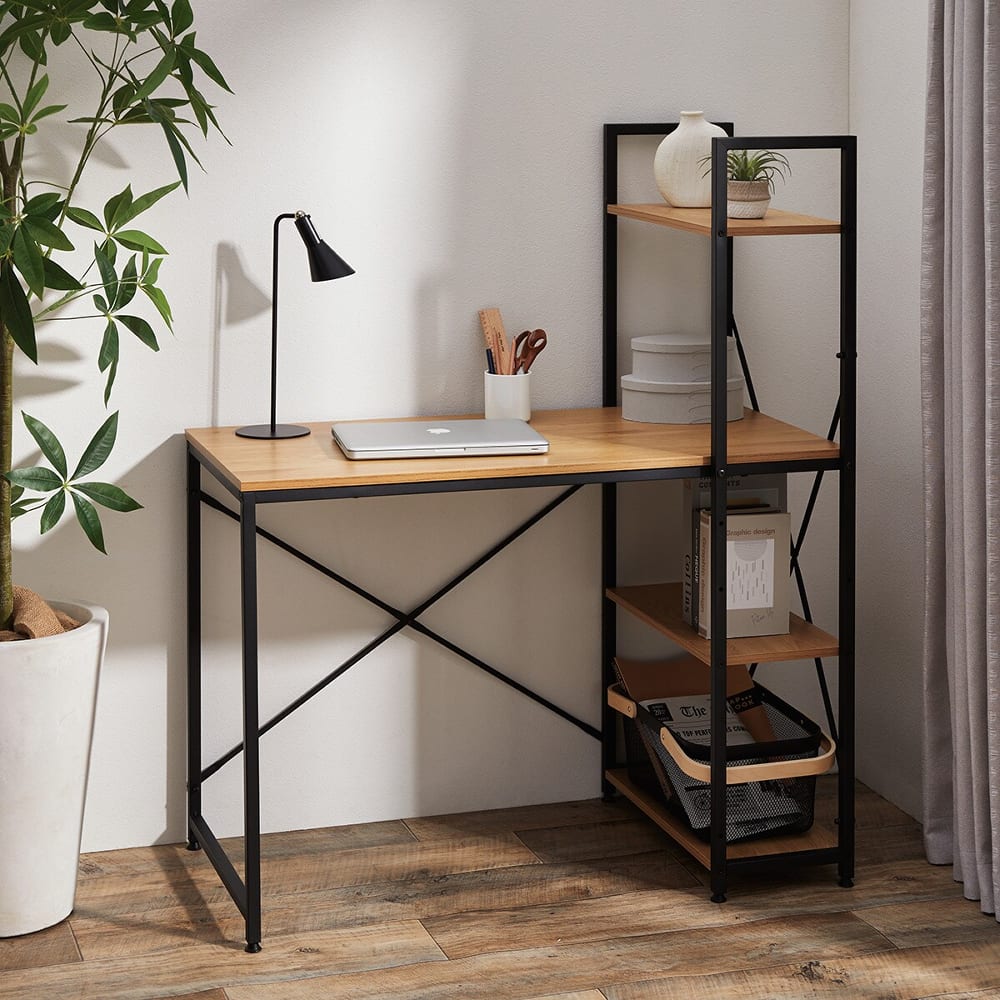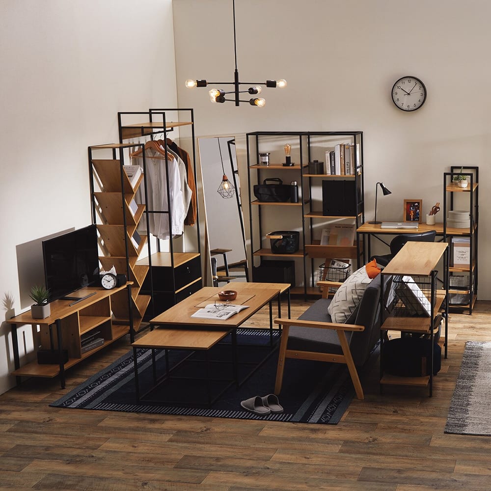 ◆シンプルで使いやすいデザインのシステムデスクは、コンパクトながらも収納力抜群。◆左右どちらにも組み替え可能なシェルフは、お部屋のレイアウトに合わせて自由に配置できるため、スペースを有効活用できます。