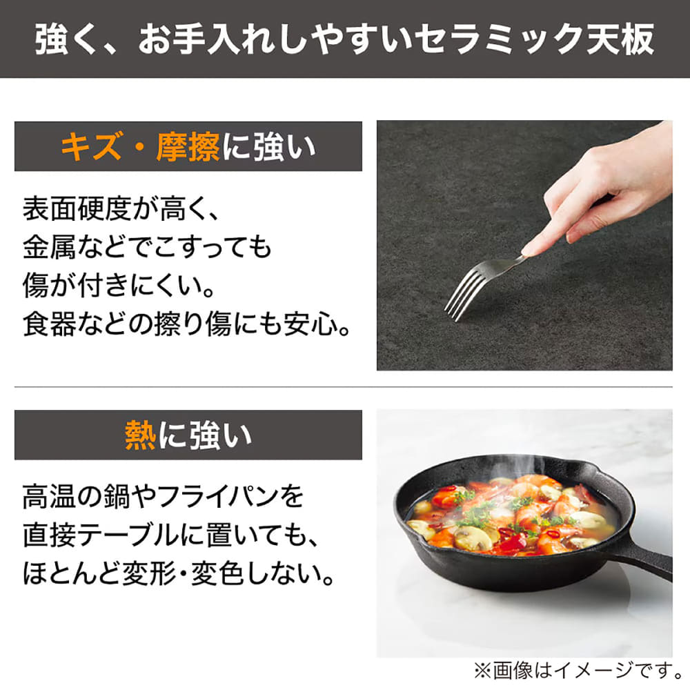 ◆キズ・摩擦に強いセラミック天板です。◆セラミックは汚れも染み込みにくいのでお手入れも簡単です。