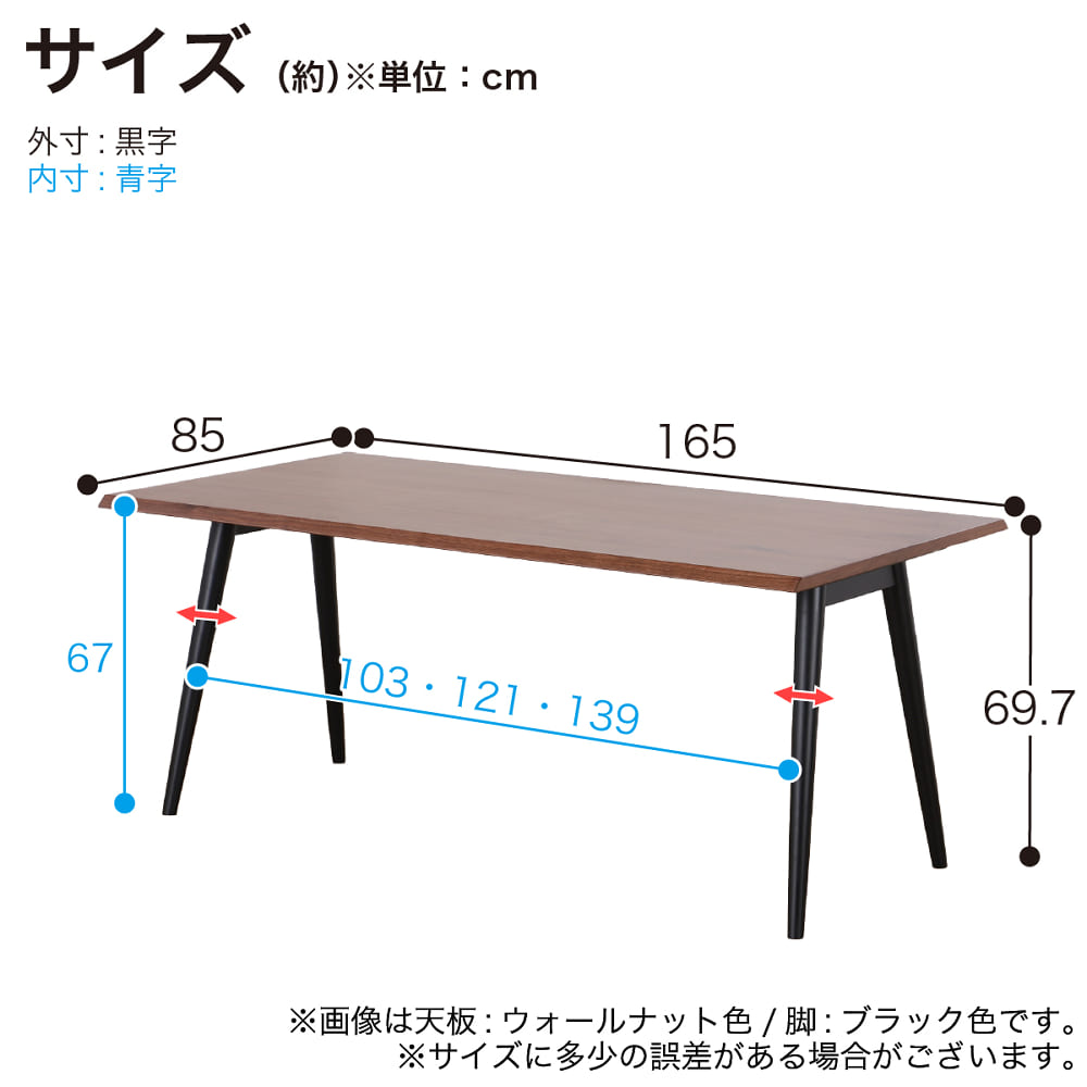 ダイニングテーブル ルート 幅165cm(天板NA/脚タイプA・BK) [ホームズオリジナル]