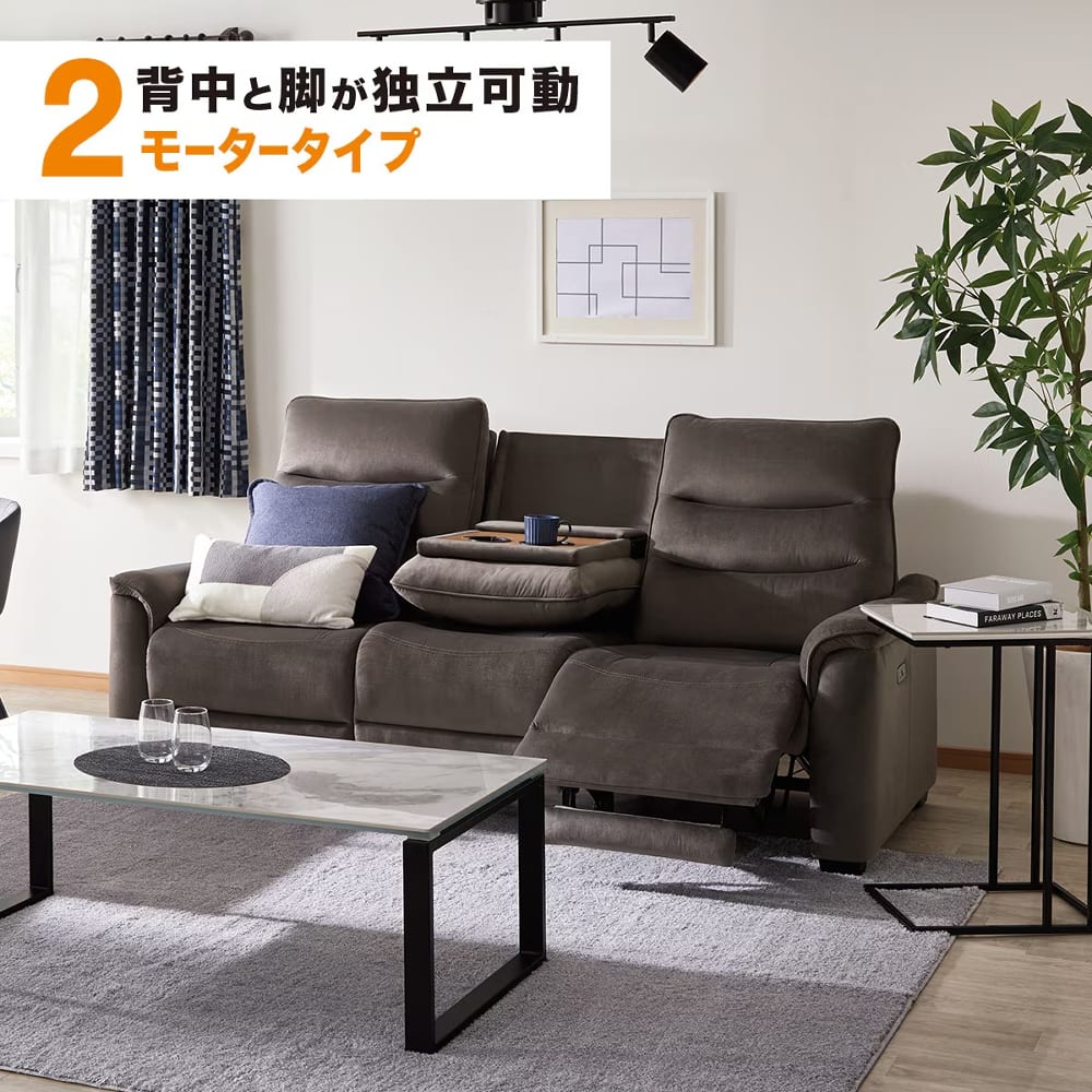 3人用リクライニングソファ(テーブル付き) 2M Tツキ3P Nビリーバ3 MF GY<N>