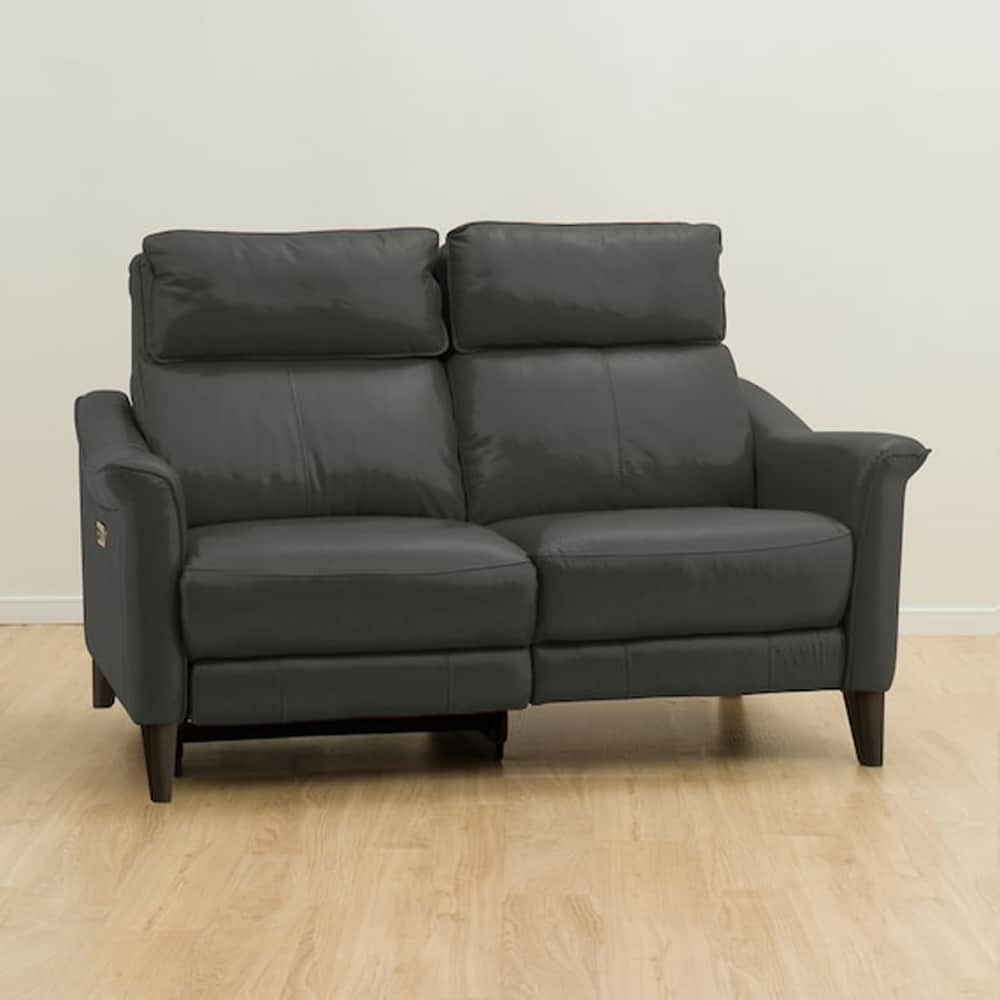 2人用右電動リクライニングソファ(チェリーブ セミアニリン革タイプ SK GY) <N>