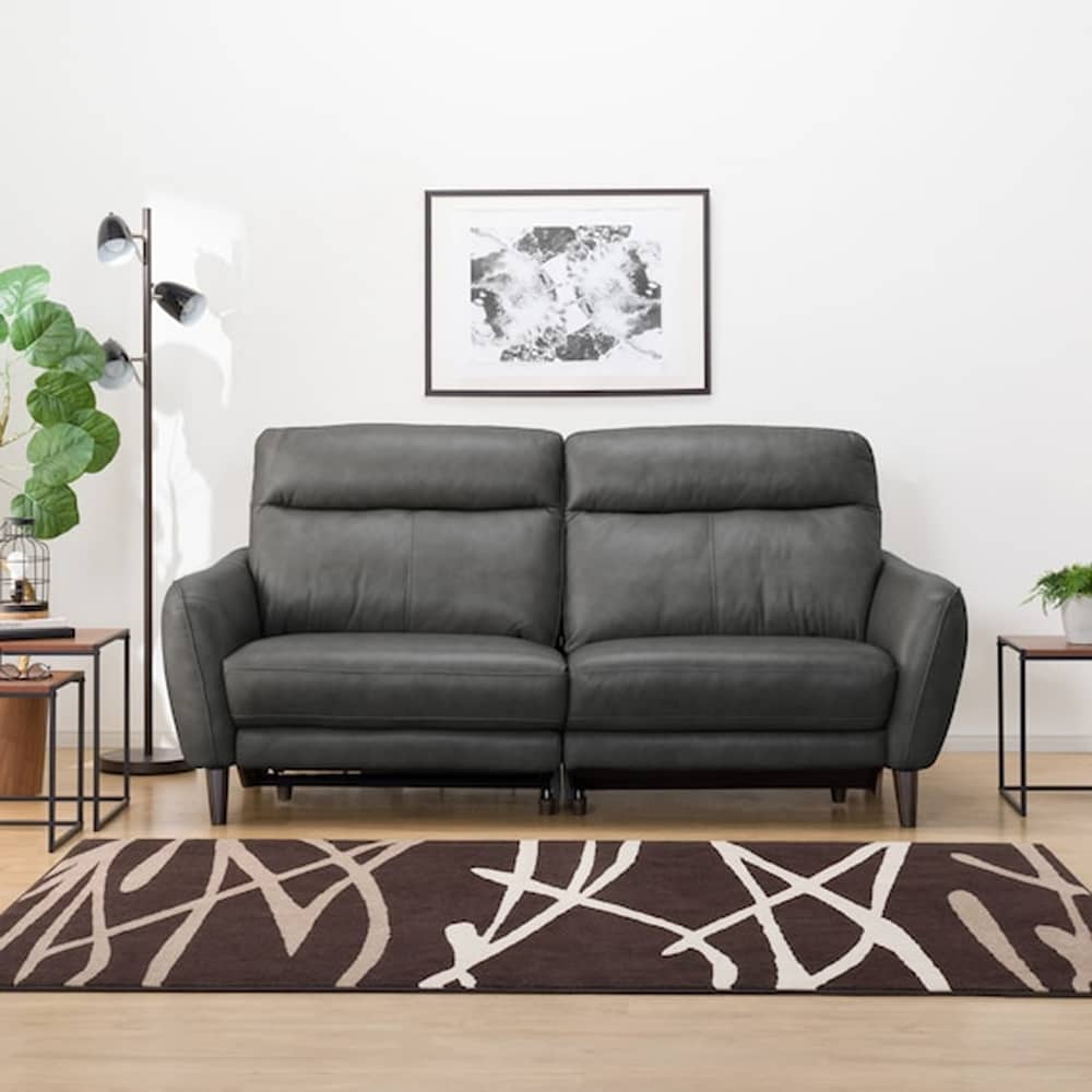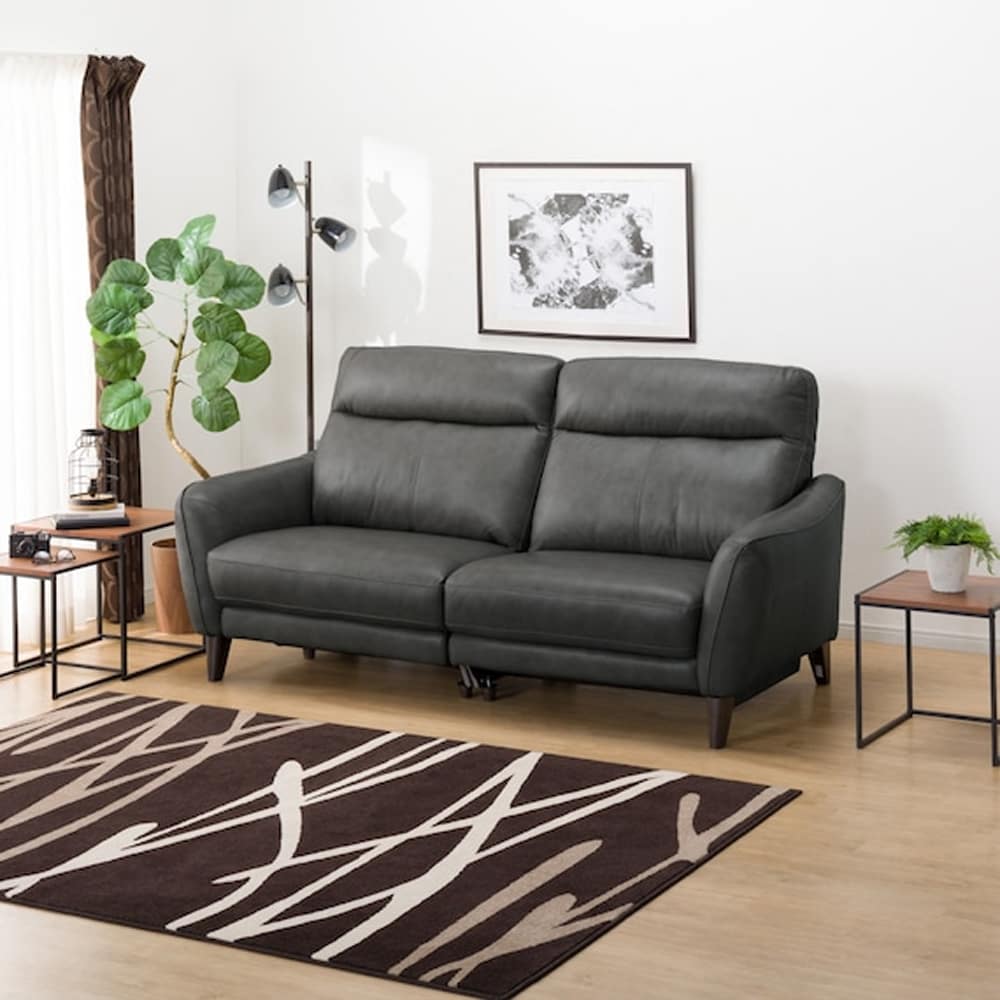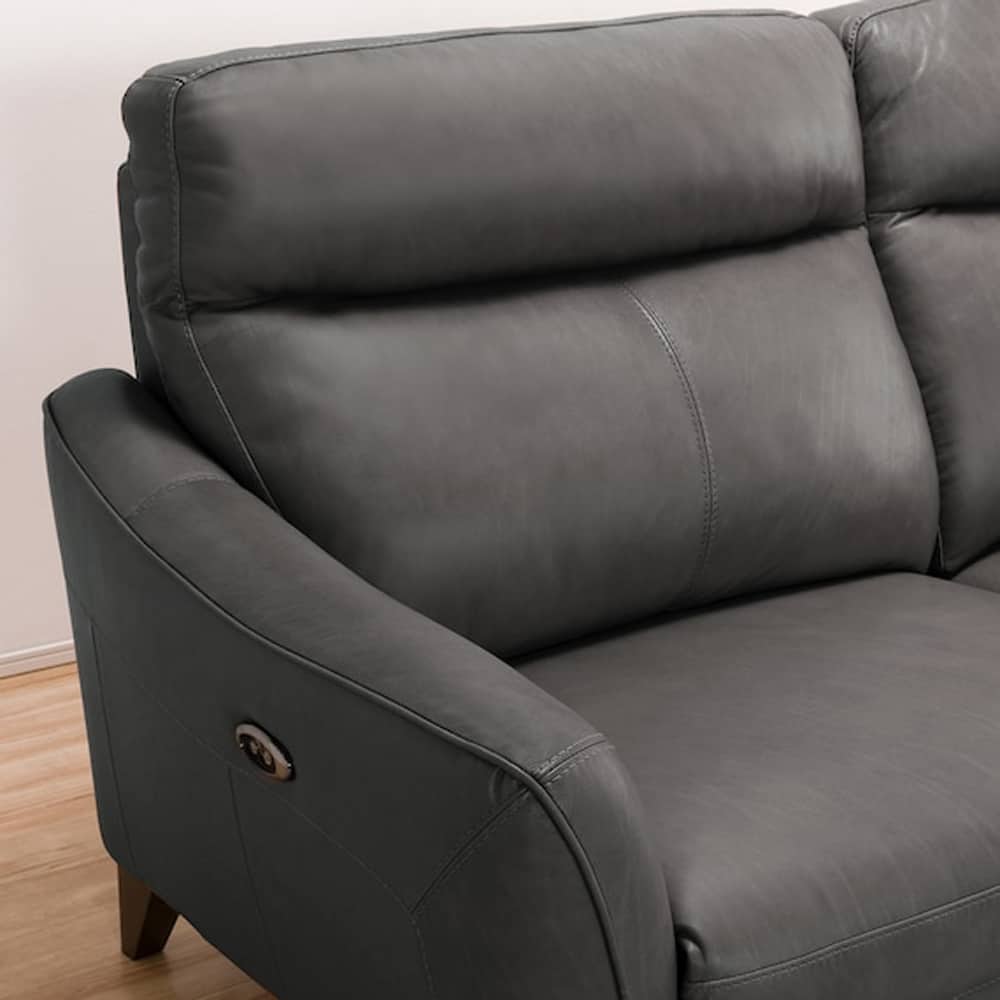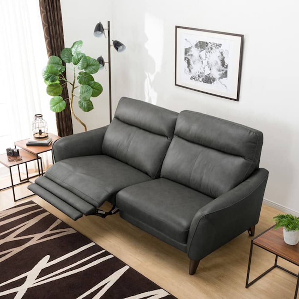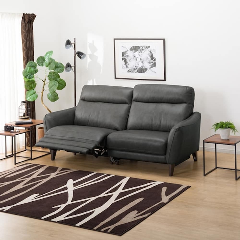 3人用右電動リクライニングソファ (アネーロセミアニリン革タイプ SK GY) <N>