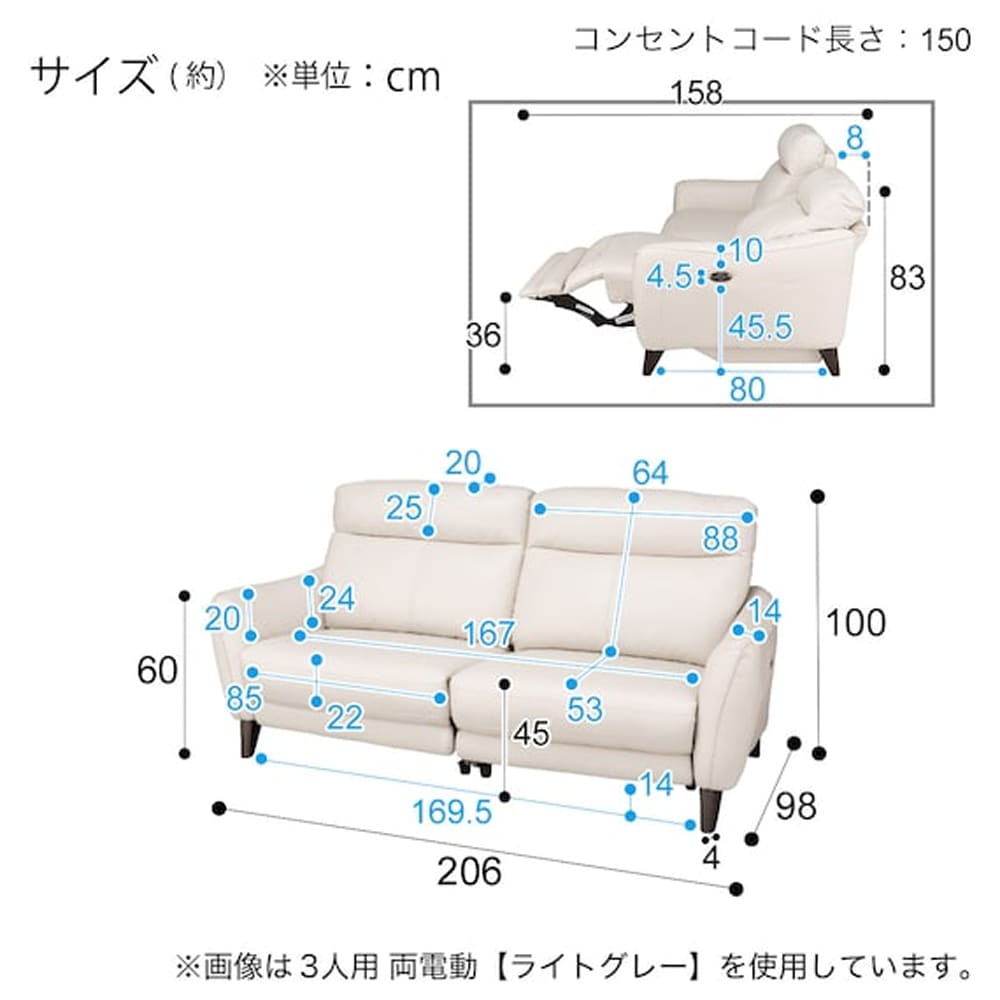 3人用右電動リクライニングソファ (アネーロセミアニリン革タイプ SK MO) <N>