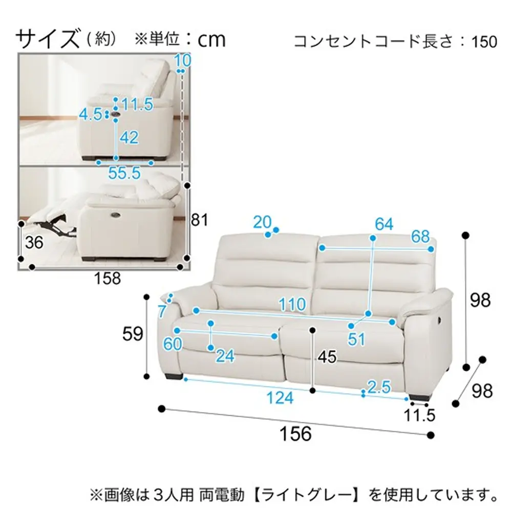 2人用左電動リクライニングソファ(クローナ スタンダードタイプ NB RE) <N>