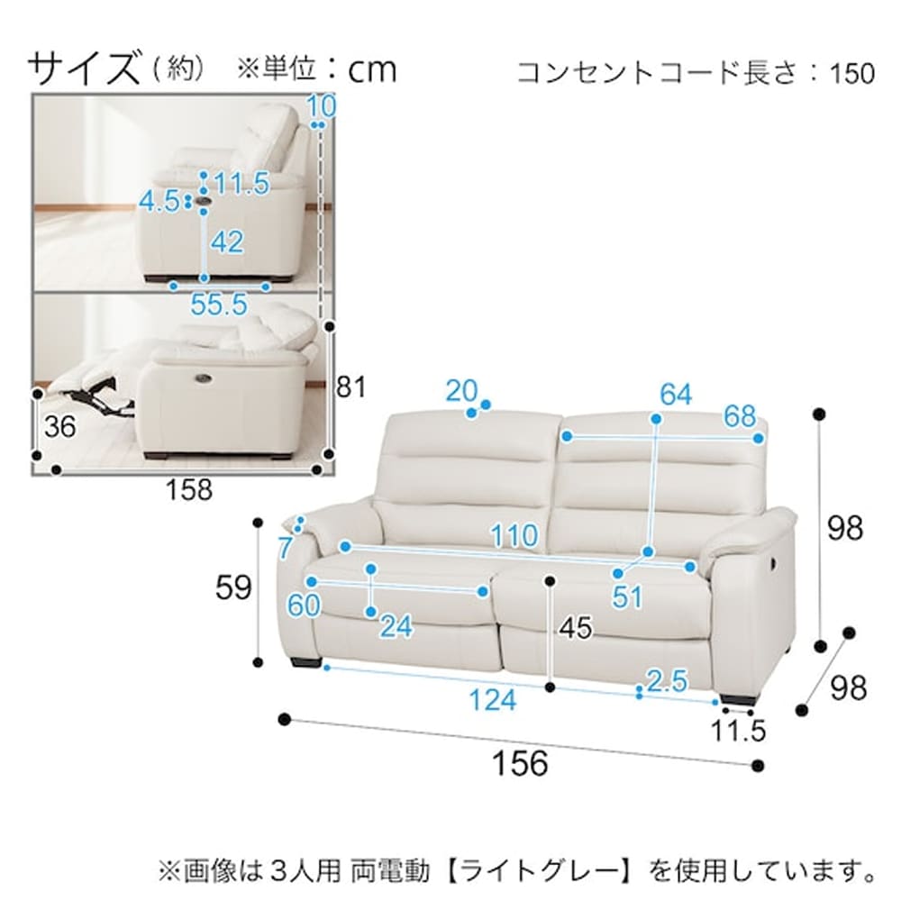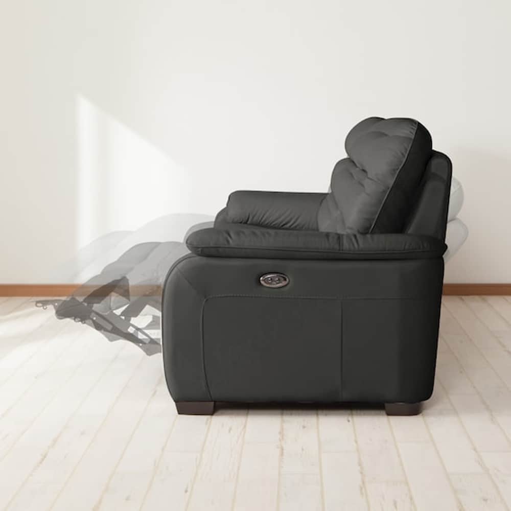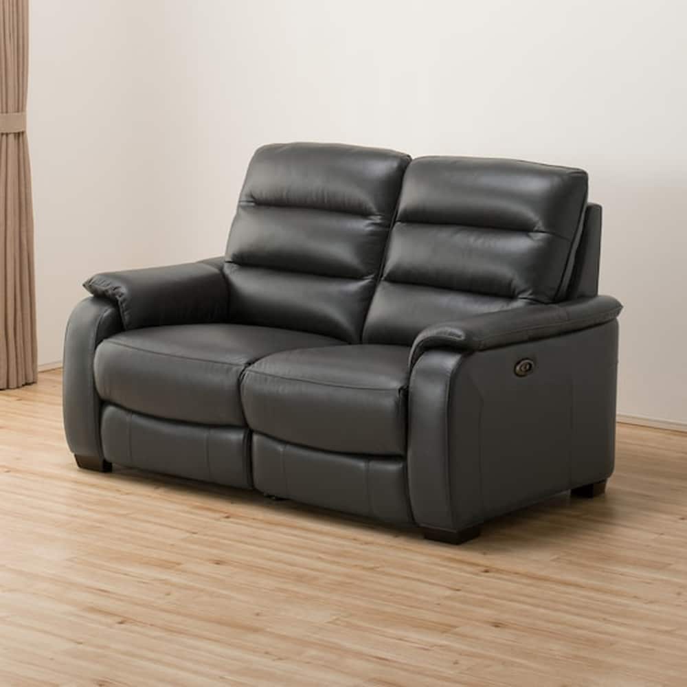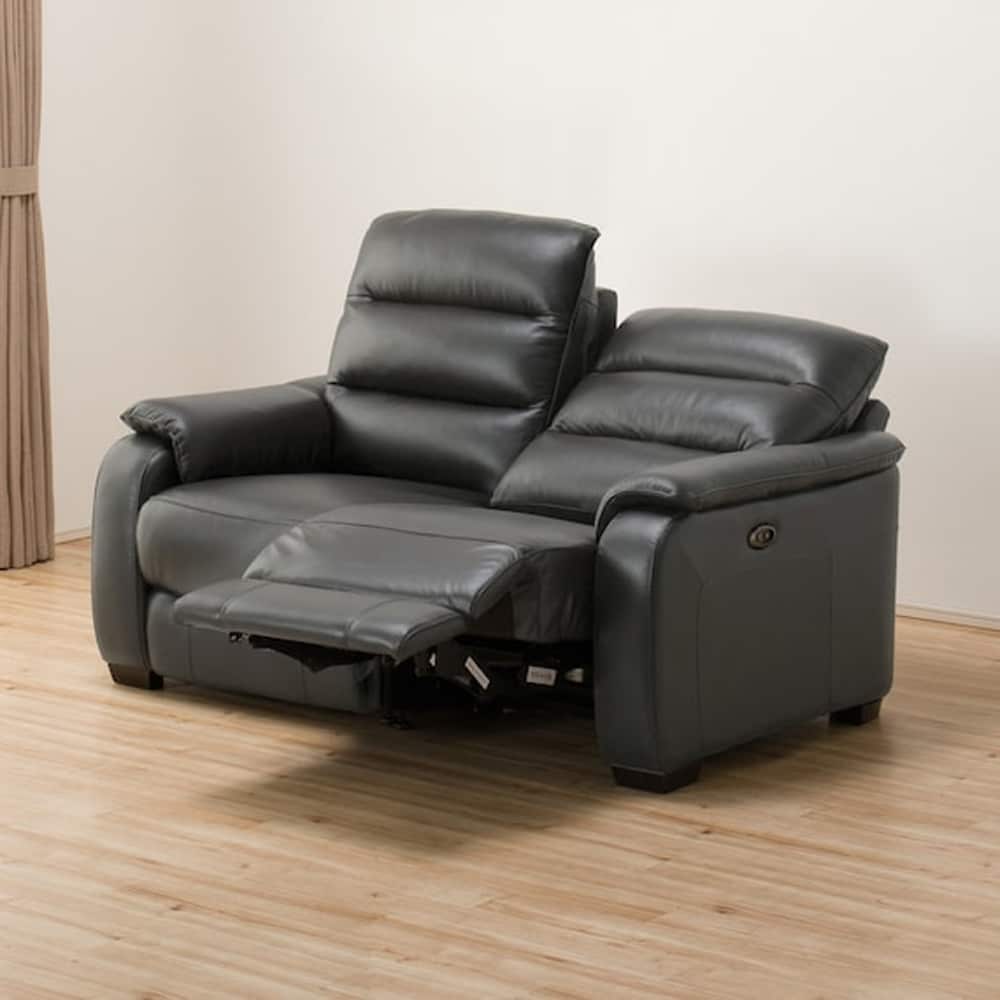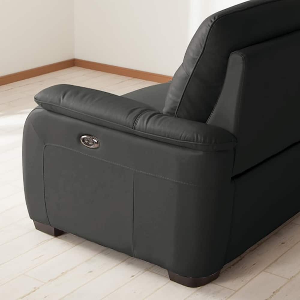 2人用左電動リクライニングソファ (クローナ セミアニリン革タイプ SK GY) <N>