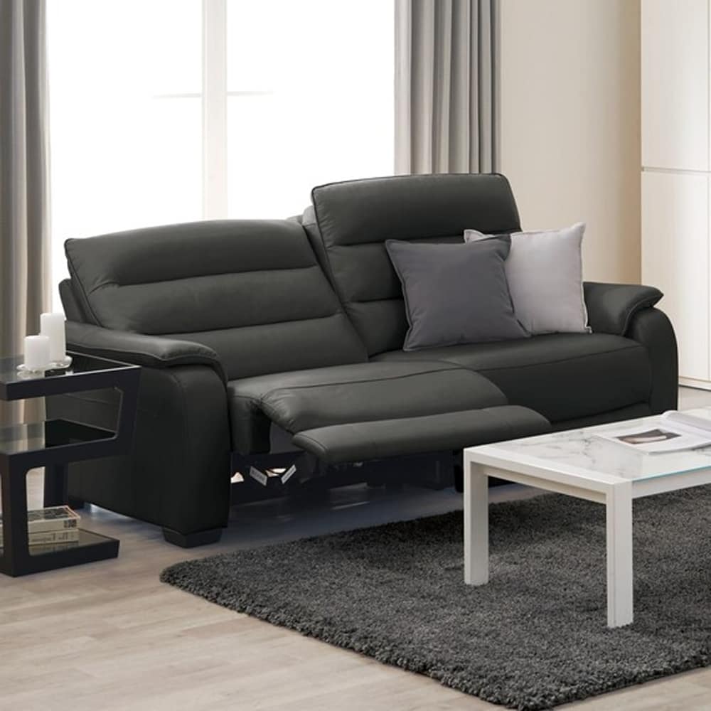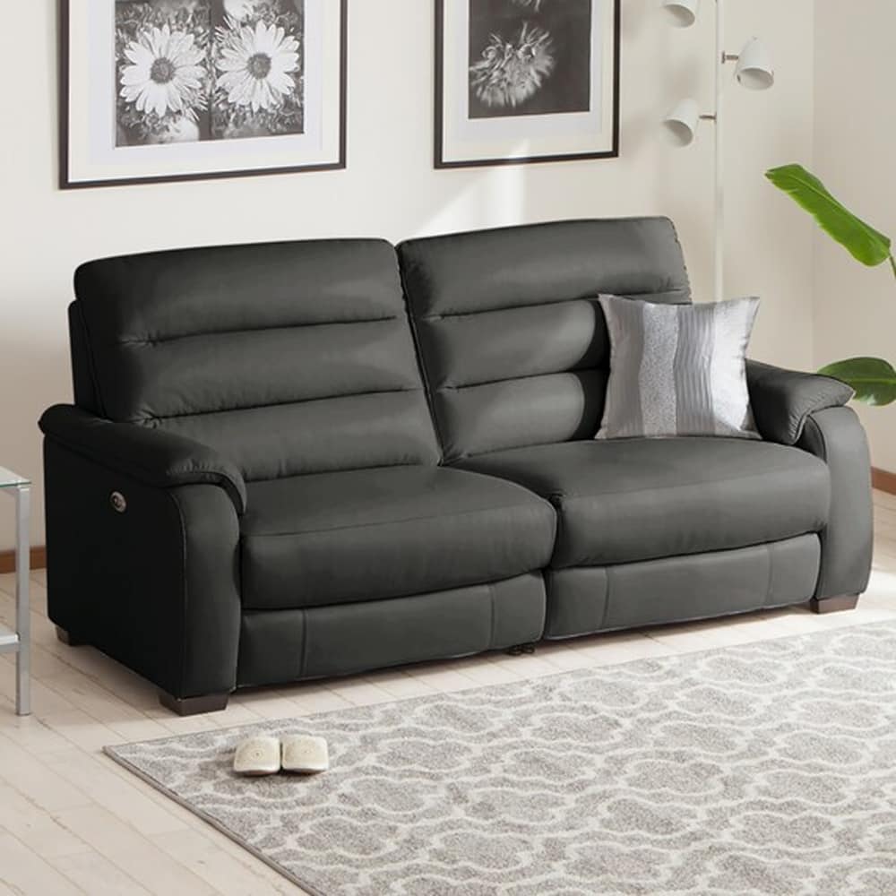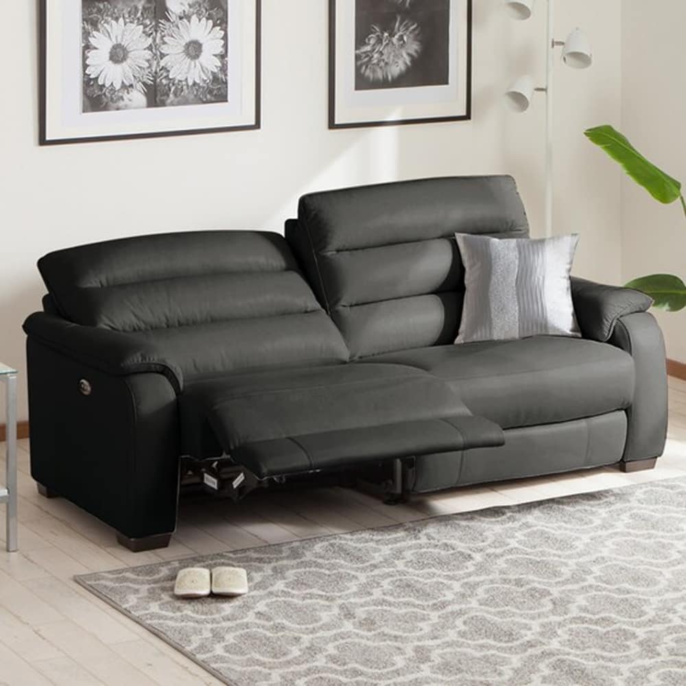 3人用右電動リクライニングソファ (クローナ セミアニリン革タイプ SK GY) <N>