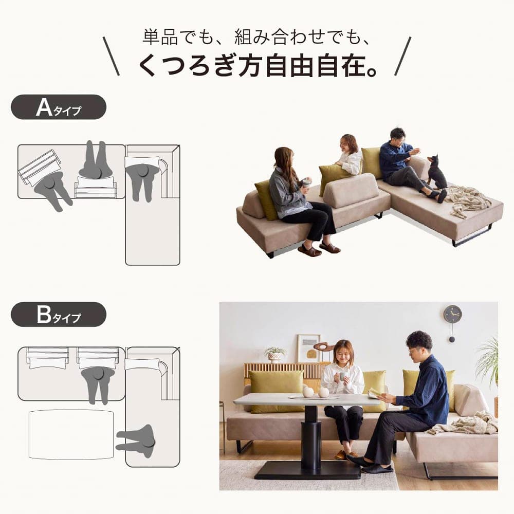 ◆アイランド型ソファになります。◆座りに合わせて、背クッション、コーナー背クッションを動かせます。