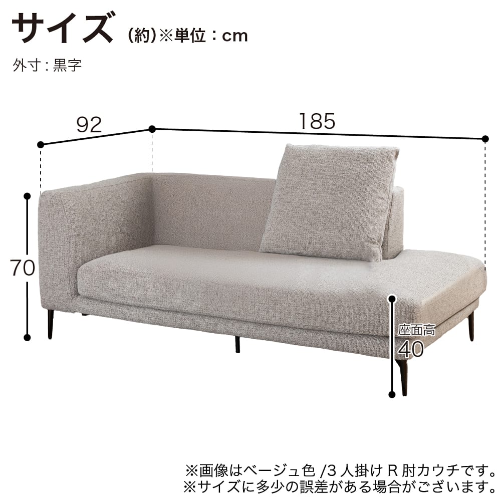 3人掛け右肘カウチソファ 3Sミギヒジ カウチソファ ムーブBE[ホームズオリジナル]