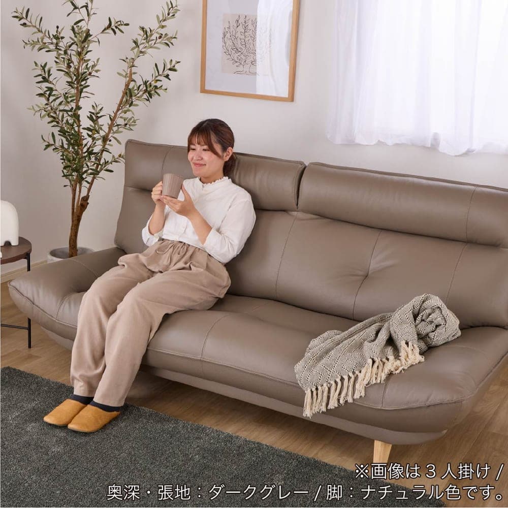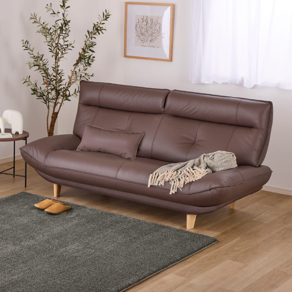 【初売りパック】3人掛けソファ ホープ 座面奥行:奥深60cm 張地:BR/脚:NA+ランバーピロー