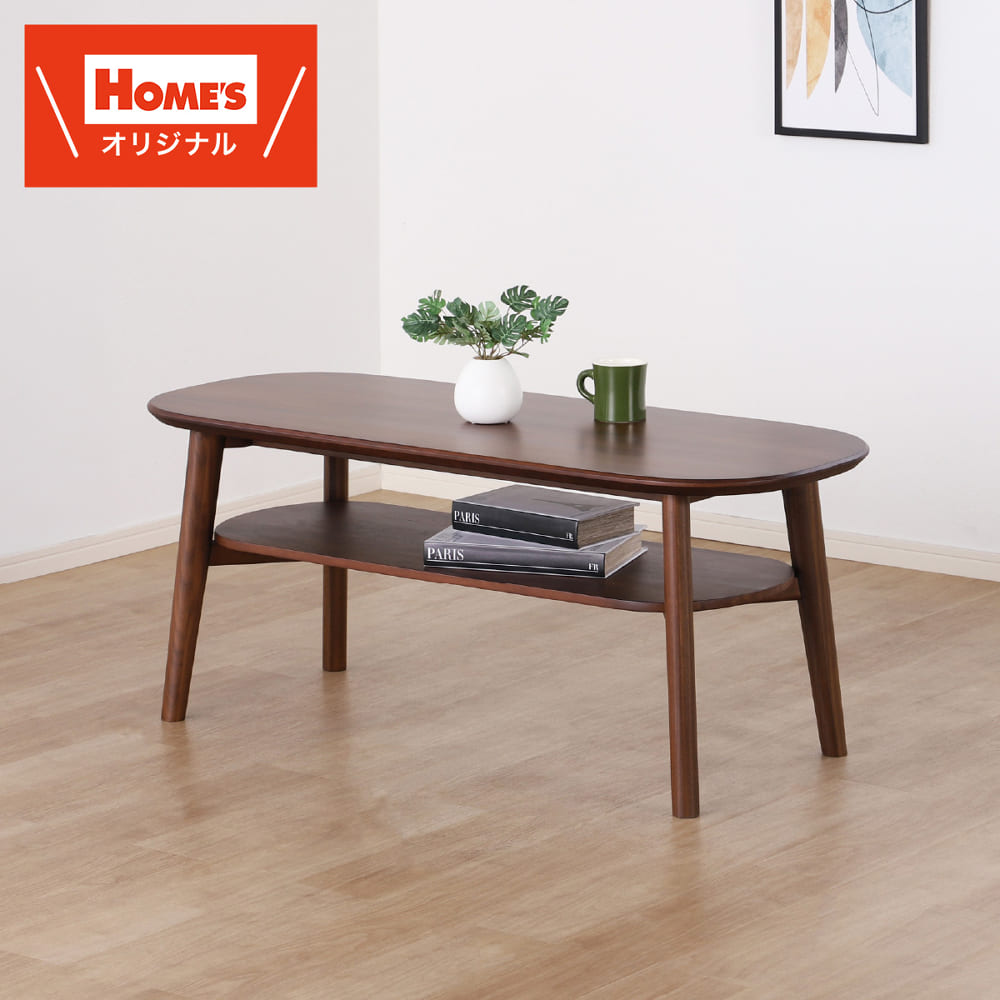 ◆ミドルブラウン色は高級感のあるウォールナット材を使用しています。◆リモコン・雑誌等の仮置きに便利な棚付きです。