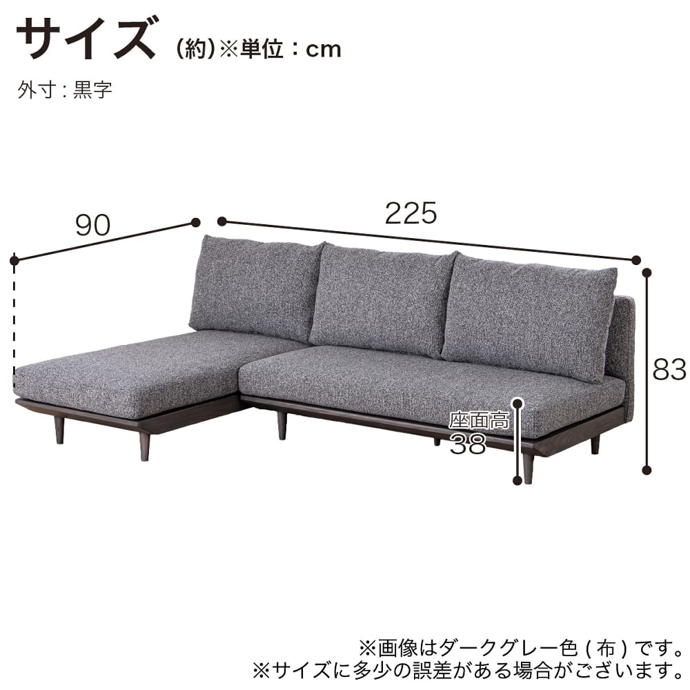 シェーズロングソファ(2S+シェーズ75) シェーズロング225 KKS04ヌノB−DGY[ホームズオリジナル]