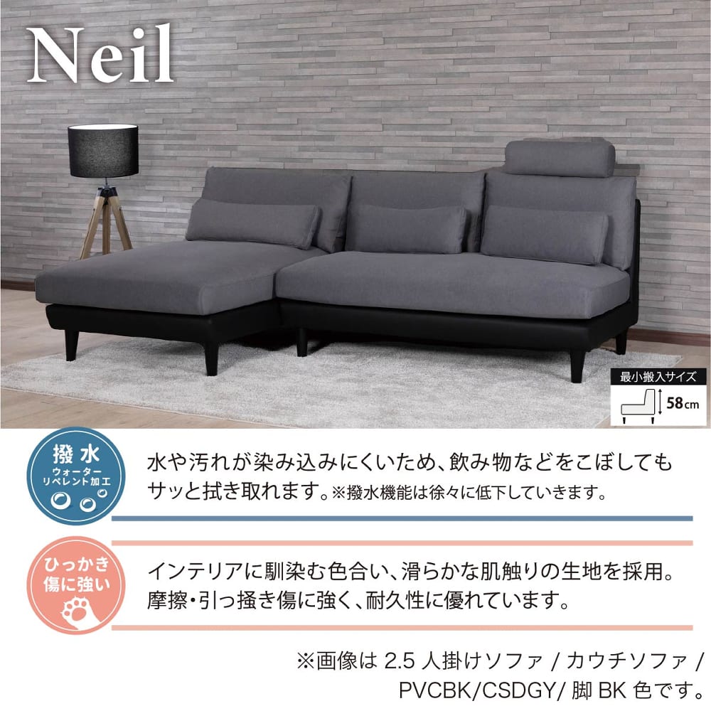 カウチソファ ニール PVCBK/CSDGY脚NA