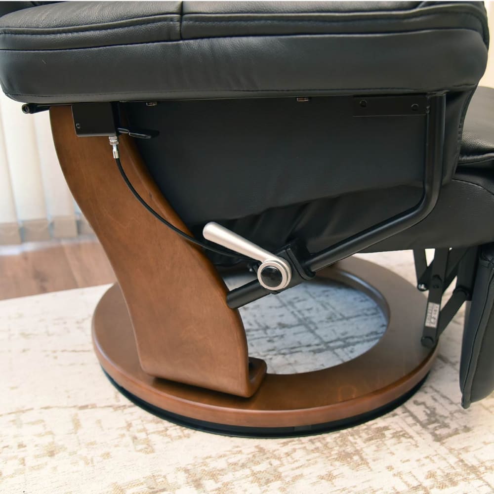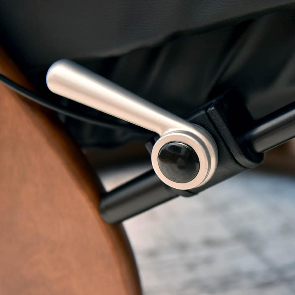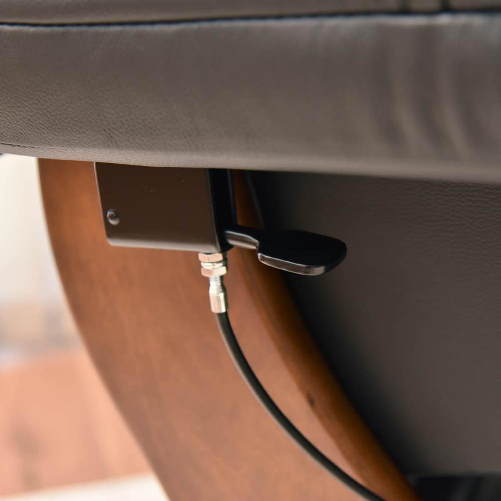 ◆フットレスト:手元レバーで角度調節。ガスシリンダー式無段階。