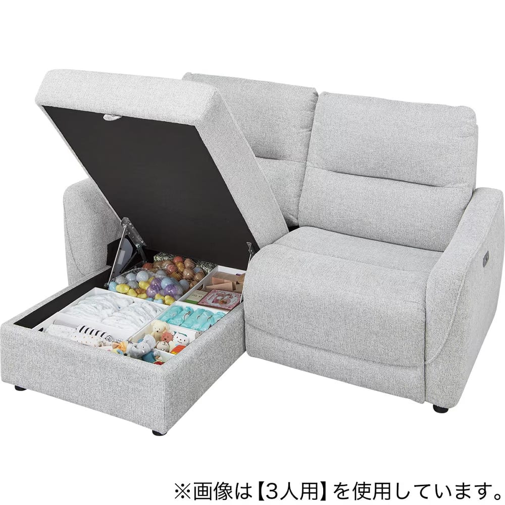 ◆右側はカウチソファで、座面下には大きな物も収納できるスペースがあり、ゆったりと脚を伸ばしてくつろげます。左側は電動ソファで、ボタン操作によるリクライニング調整が可能です。用途に合わせてシートを選べるので、読書や映画鑑賞、リラックスタイムなど、幅広いシーンで快適にお使いいただけます。