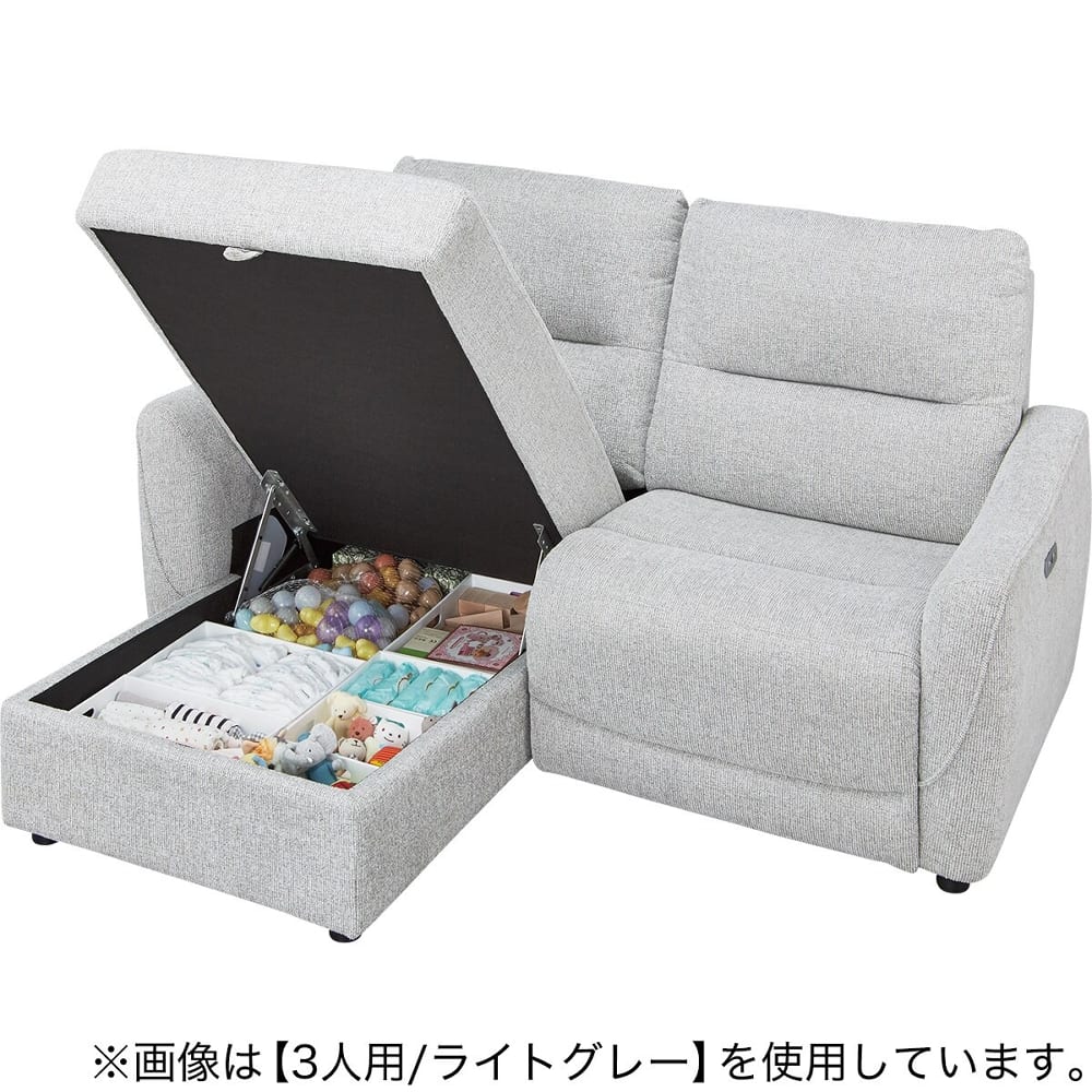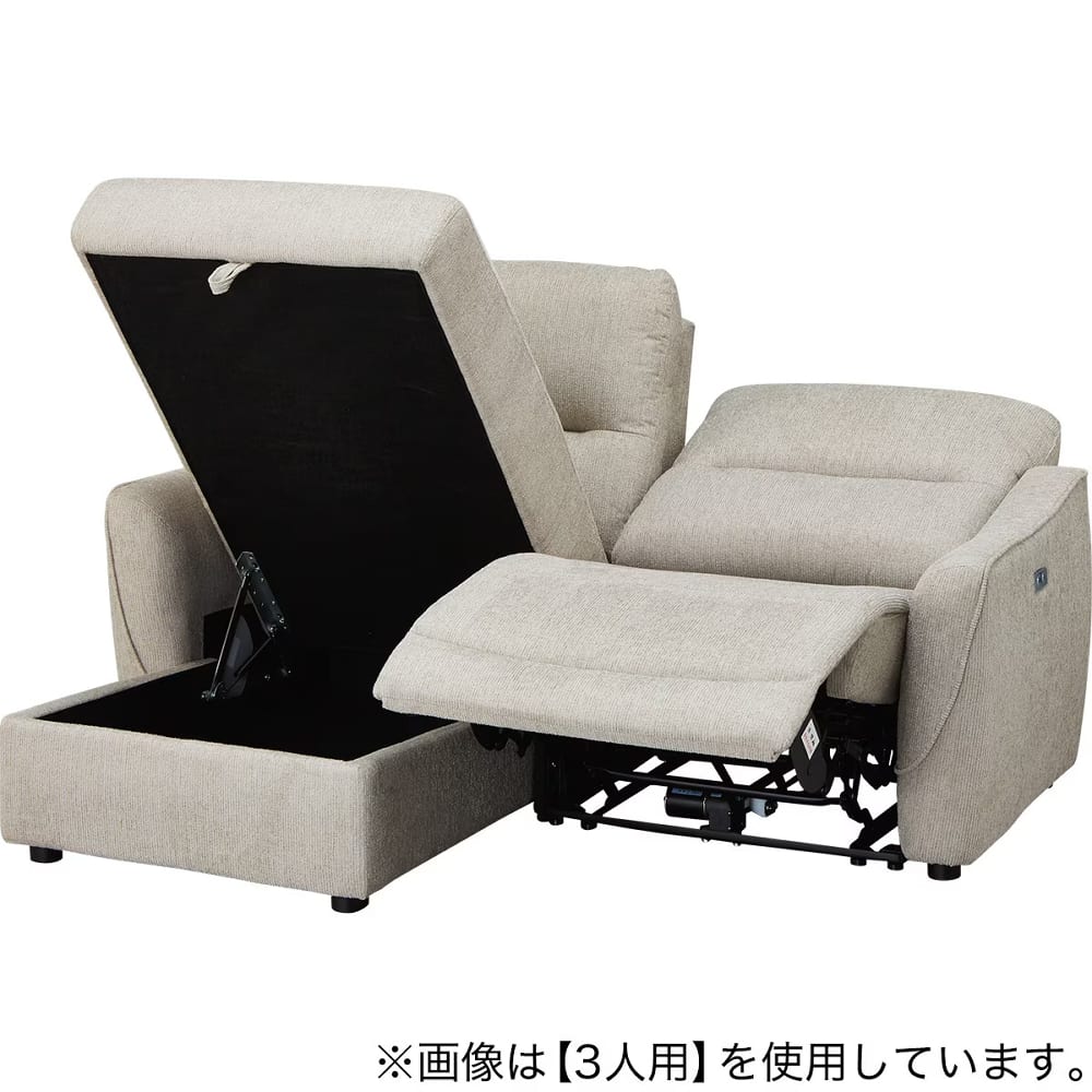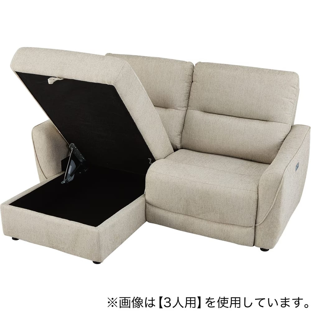 ◆右側はカウチソファで、座面下には大きな物も収納できるスペースがあり、ゆったりと脚を伸ばしてくつろげます。左側は電動ソファで、ボタン操作によるリクライニング調整が可能です。用途に合わせてシートを選べるので、読書や映画鑑賞、リラックスタイムなど、幅広いシーンで快適にお使いいただけます。