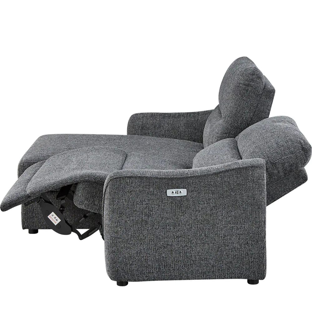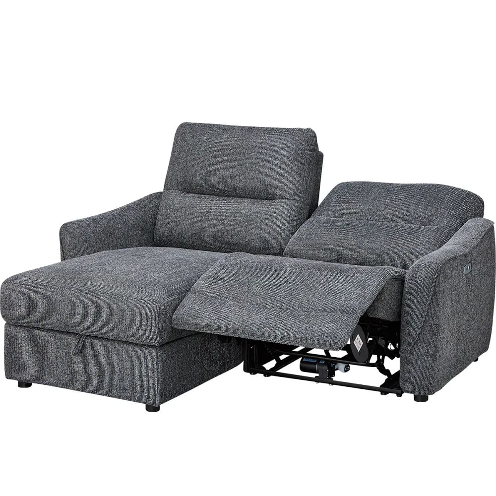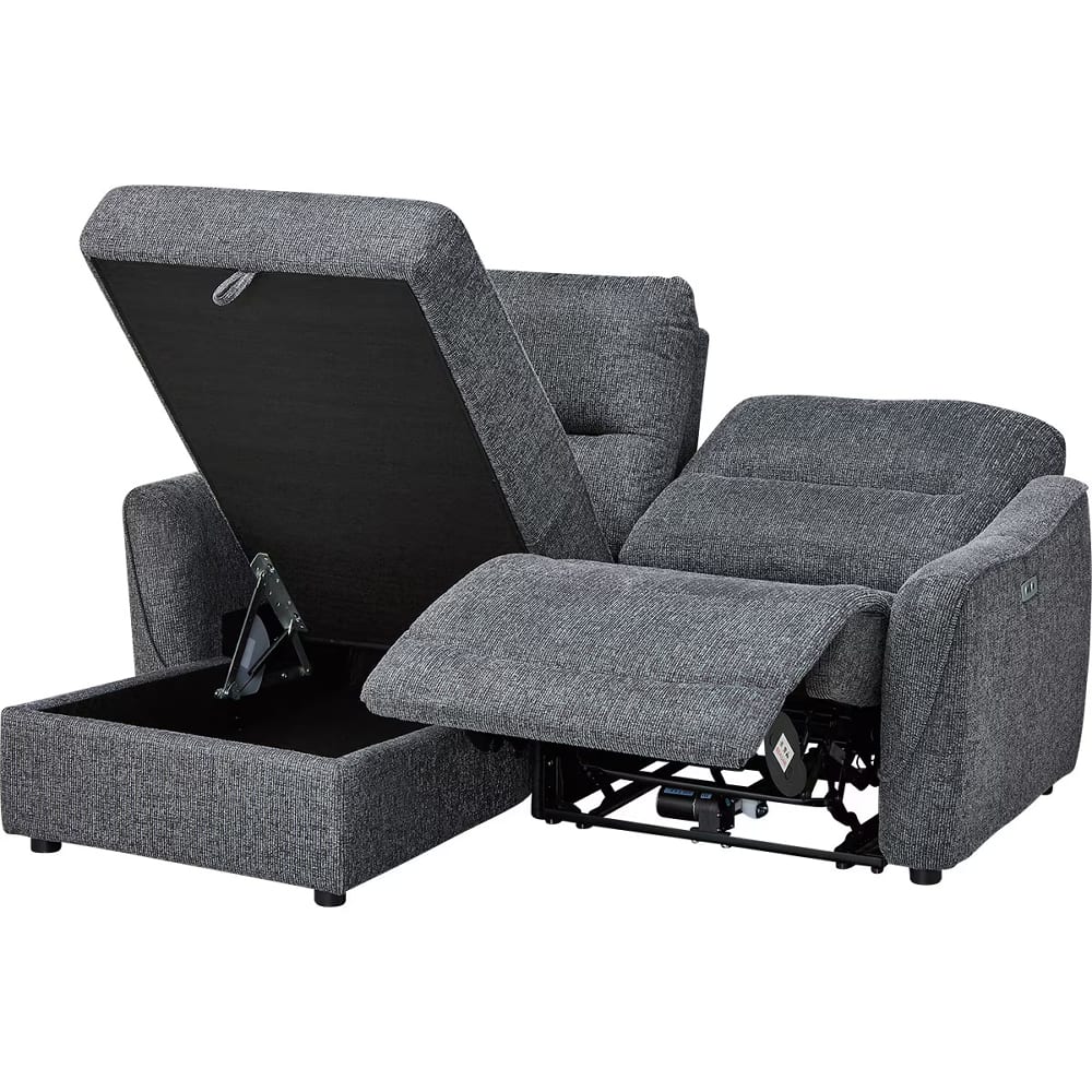 ◆右側はカウチソファで、座面下には大きな物も収納できるスペースがあり、ゆったりと脚を伸ばしてくつろげます。左側は電動ソファで、ボタン操作によるリクライニング調整が可能です。用途に合わせてシートを選べるので、読書や映画鑑賞、リラックスタイムなど、幅広いシーンで快適にお使いいただけます。