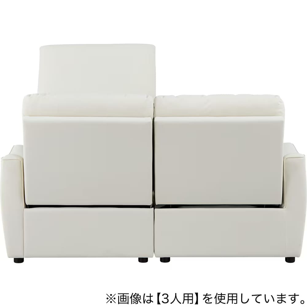 ◆同じシリーズの別売りアームレスソファを追加すれば、ワイドタイプに。背もたれを倒すとテーブルとして利用でき、テーブル部分には2つのドリンクホルダーが付いているため、飲み物を置くのにとても便利です。