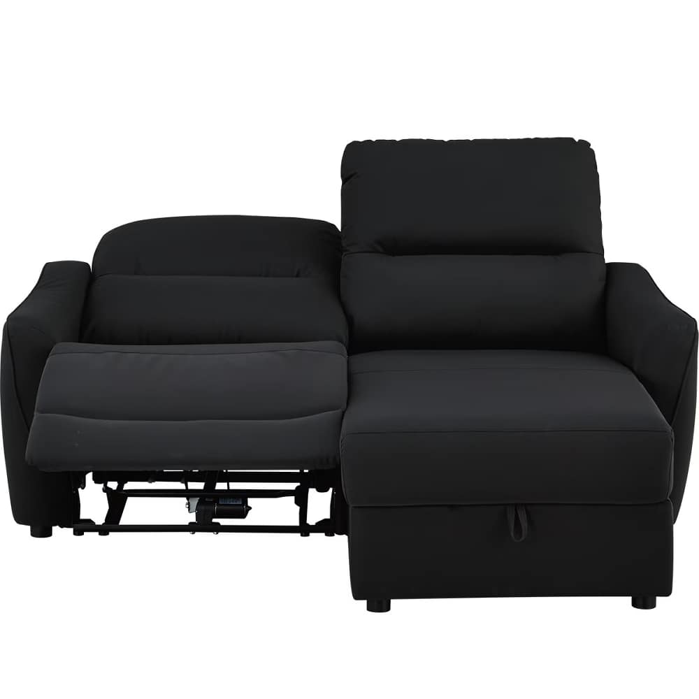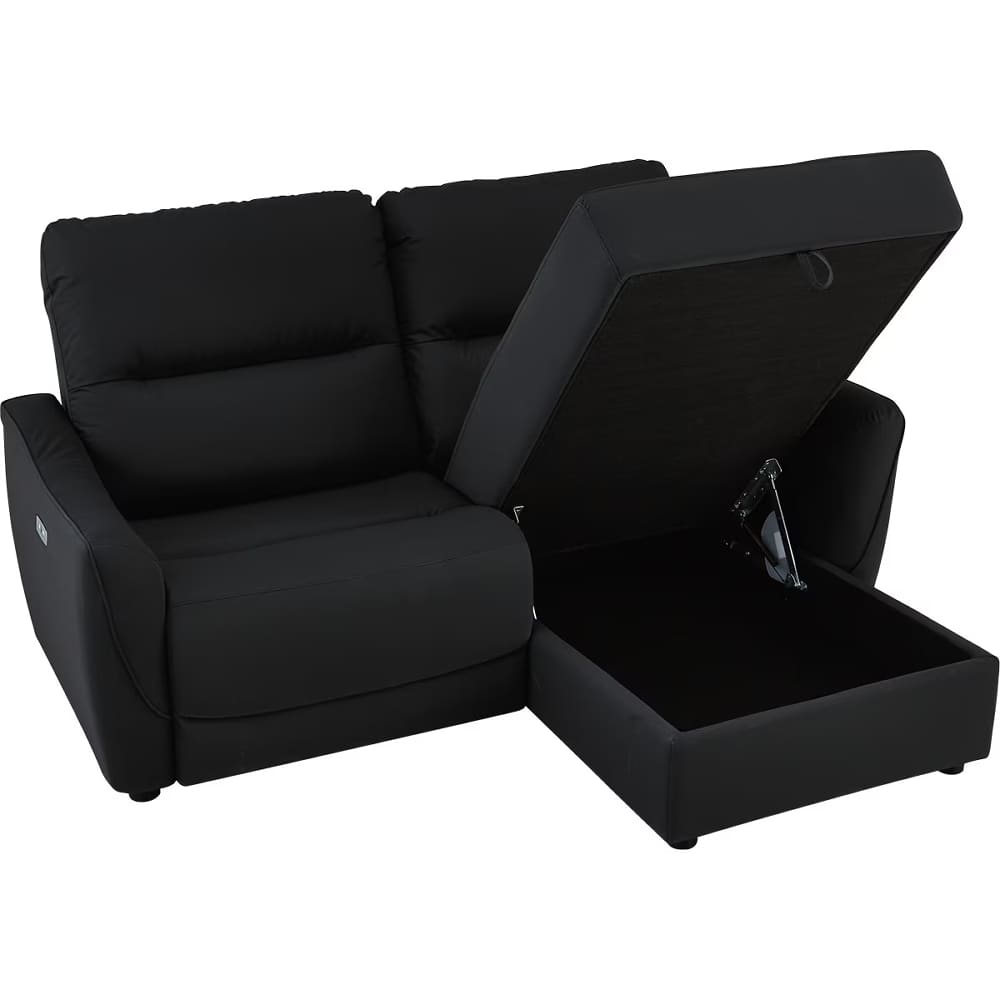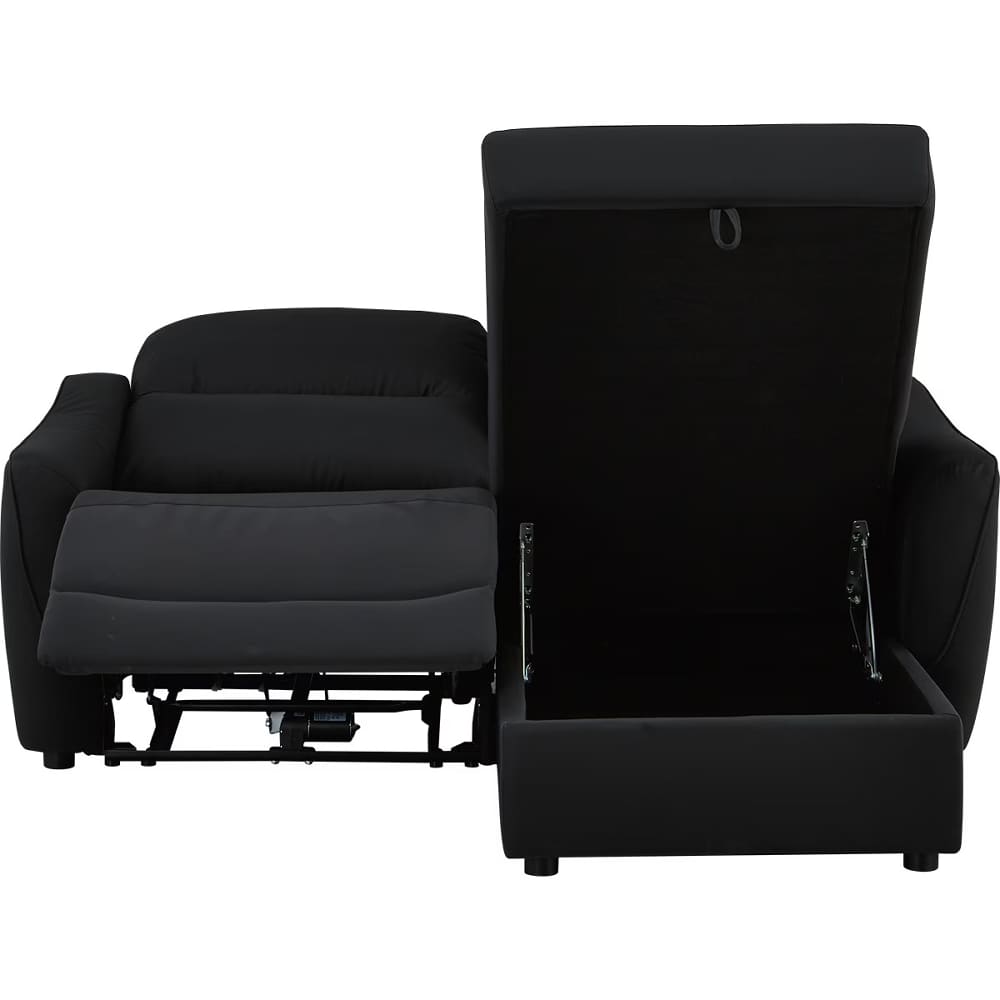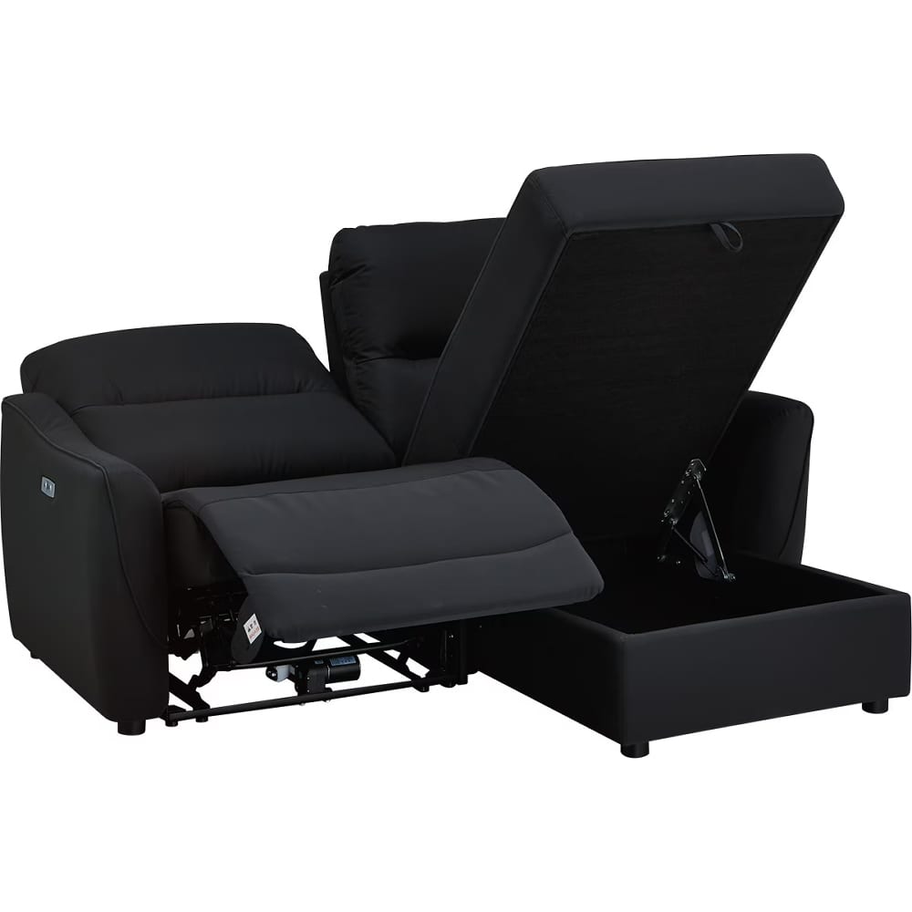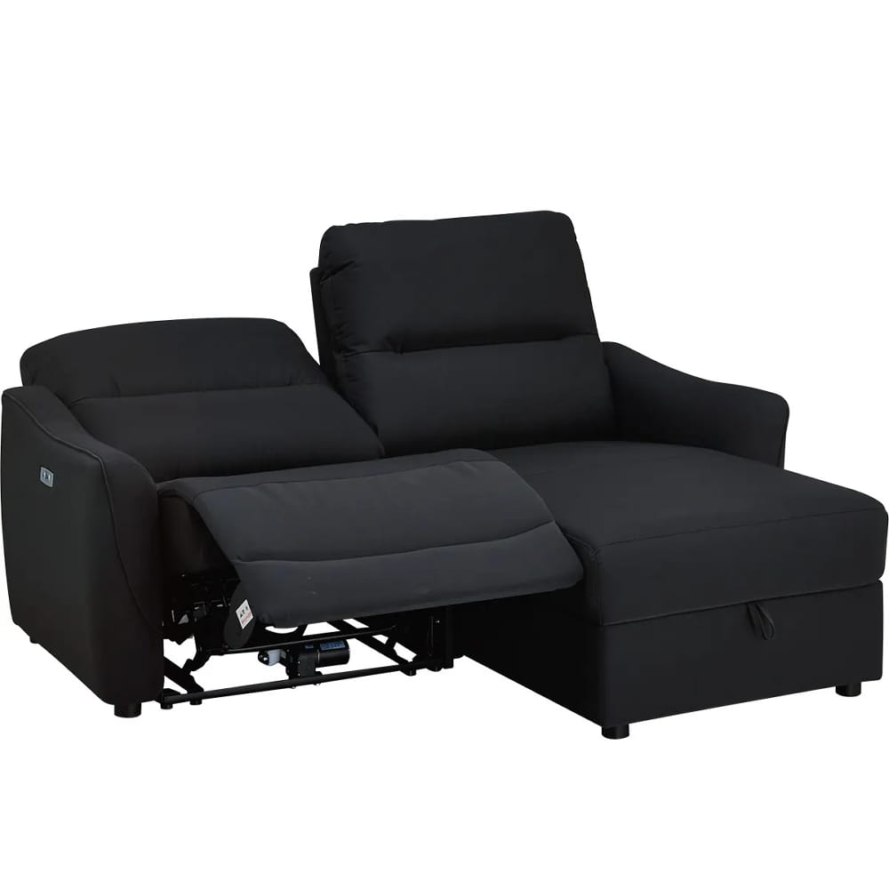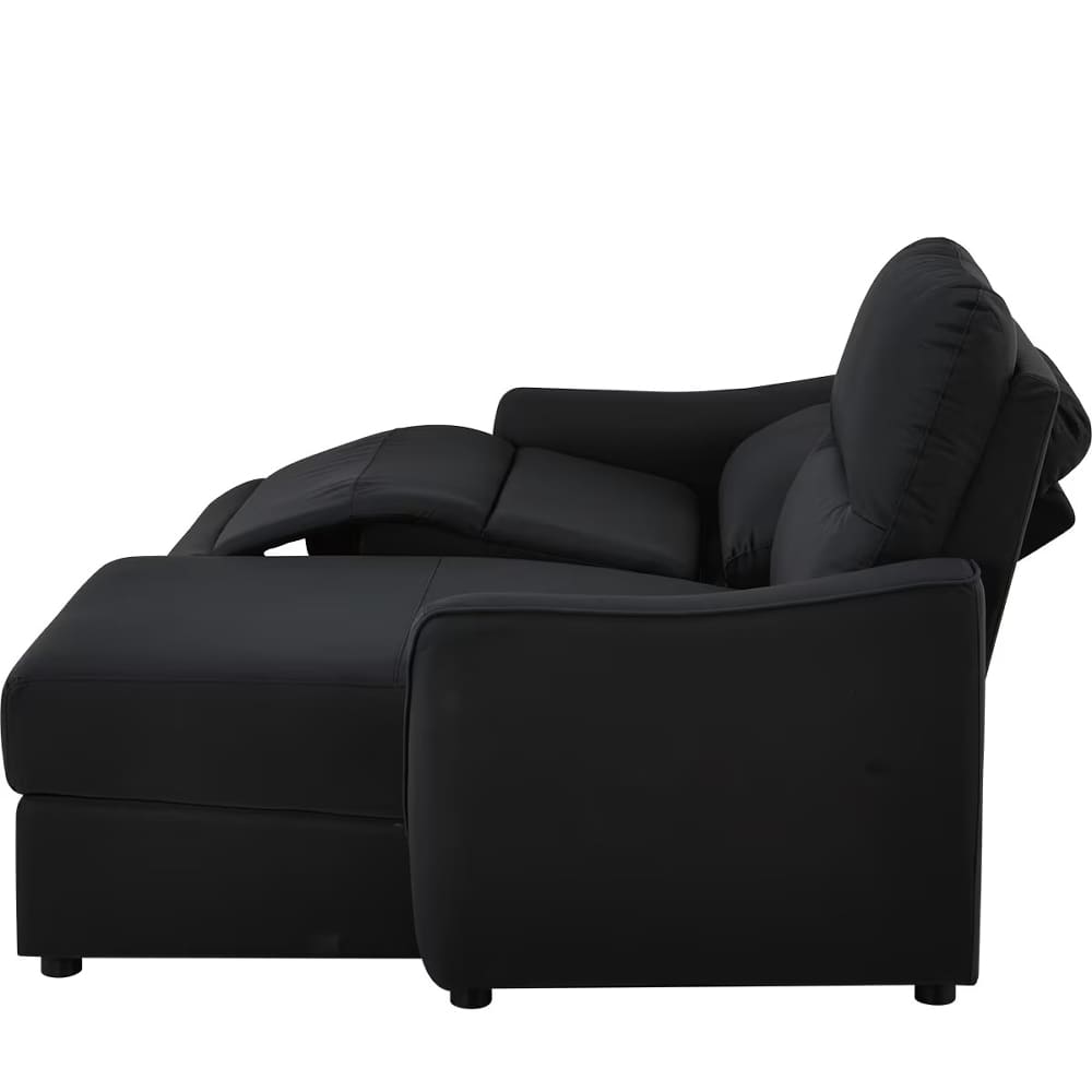 ◆左側はカウチソファで、座面下には大きな物も収納できるスペースがあり、ゆったりと脚を伸ばしてくつろげます。左側は電動ソファで、ボタン操作によるリクライニング調整が可能です。用途に合わせてシートを選べるので、読書や映画鑑賞、リラックスタイムなど、幅広いシーンで快適にお使いいただけます。