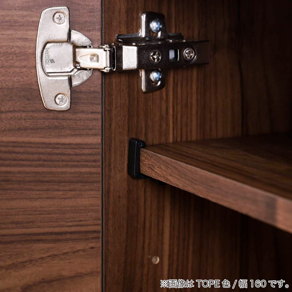◆サイドボード開き戸内部の2枚可動棚が付いています、大きさに合った高さを調整できる可動棚式。