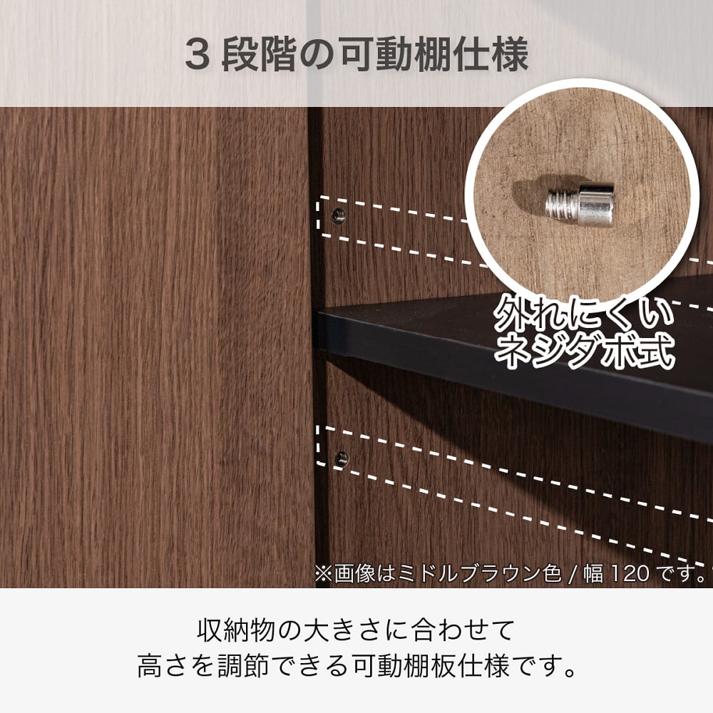◆両開き収納は、収納物に応じて高さ調節ができる可動棚仕様