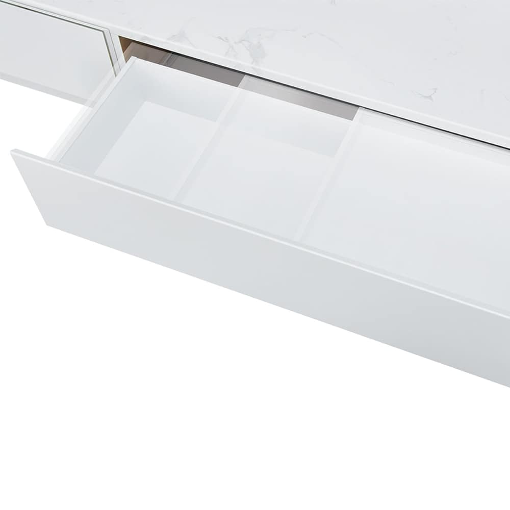 ◆左側がフラップ式扉(ガラス面)、右側が引出しタイプ。全てフルオープンスライドレール仕様で開閉ラクラク。引出し上部には小物収納に便利なスライド引出し付き。