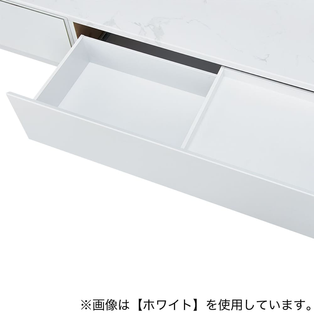 ◆左側がフラップ式扉(ガラス面)、右側が引出しタイプ。全てフルオープンスライドレール仕様で開閉ラクラク。引出し上部には小物収納に便利なスライド引出し付き。
