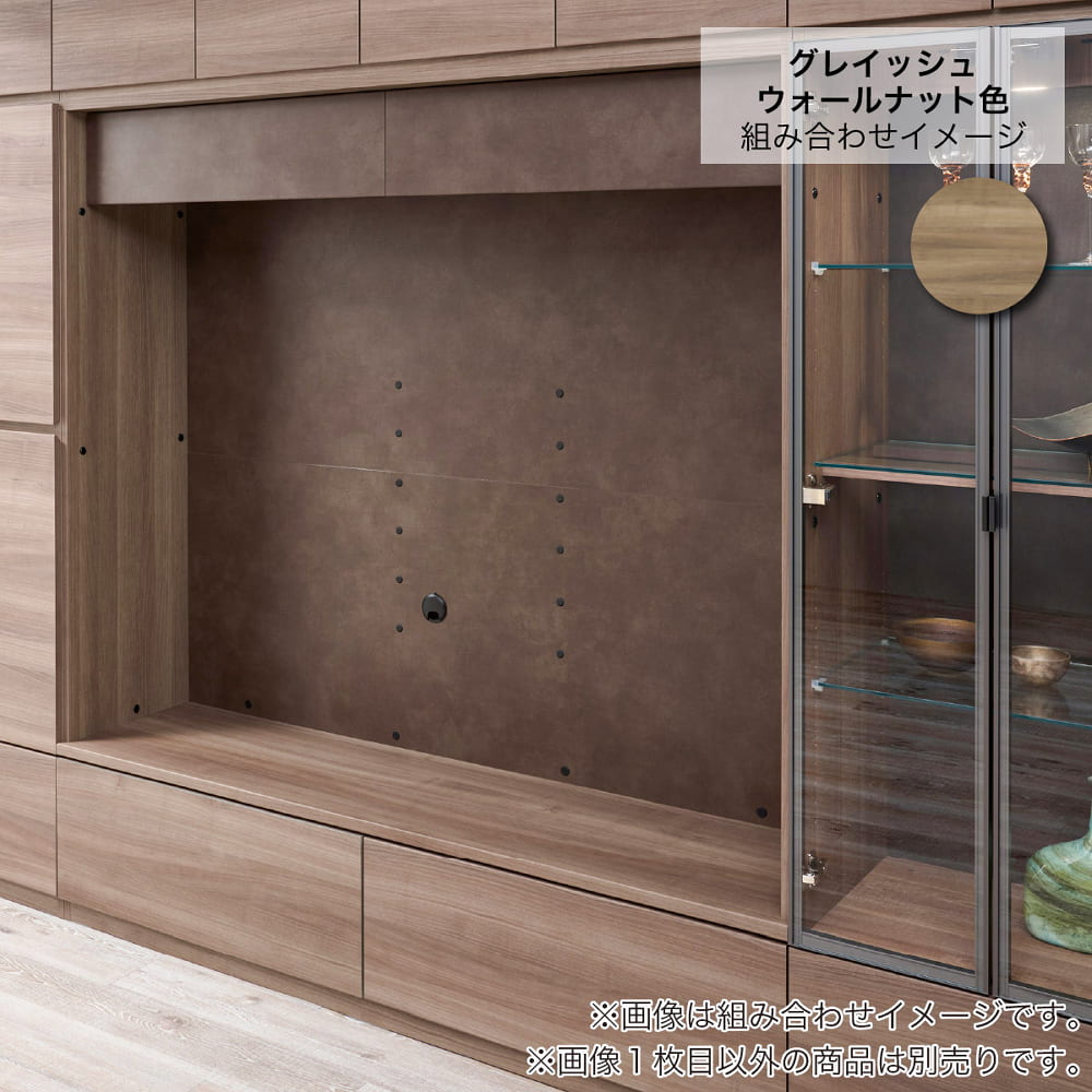◆グレイッシュナットとウォールナットの時はバックパネルがラスターブラウン色となり、モダンな印象の壁面収納となっています。