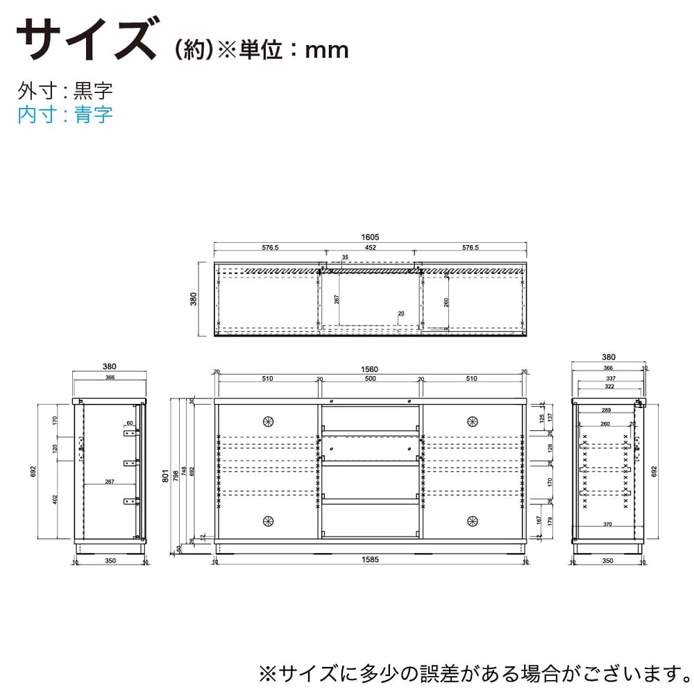 | サイズ: | 幅160.5cm ×奥行38cm ×高さ80.1cm |