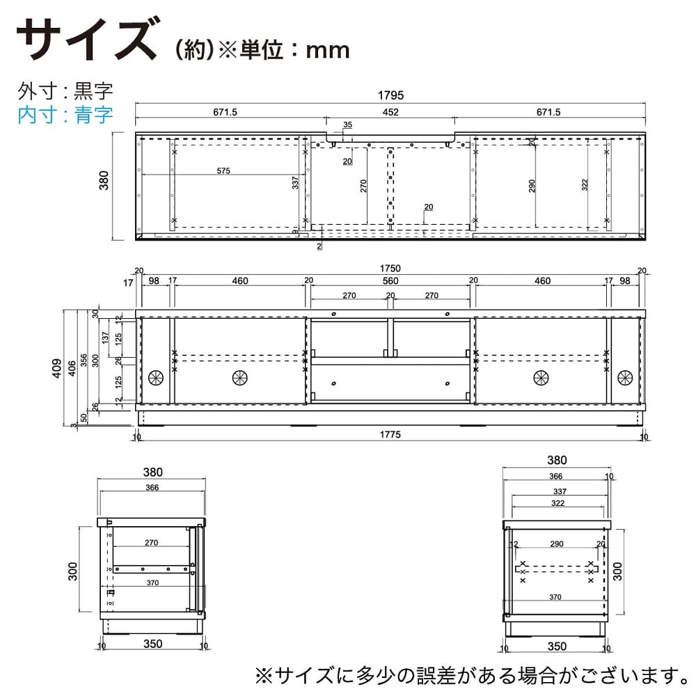 | サイズ: | 幅179.5cm ×奥行38cm ×高さ40.9cm |