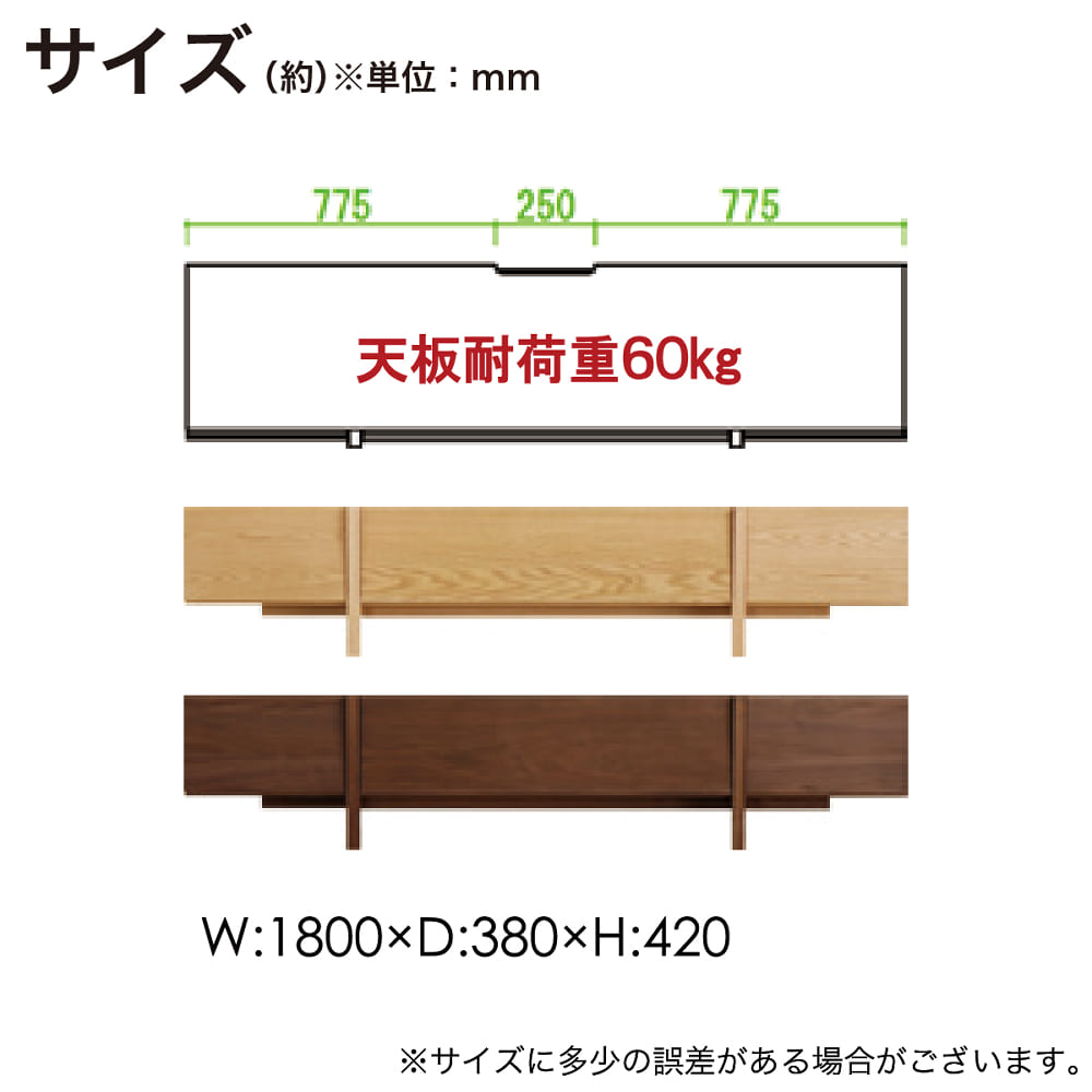 | サイズ: | 幅180cm ×奥行38cm ×高さ42cm |