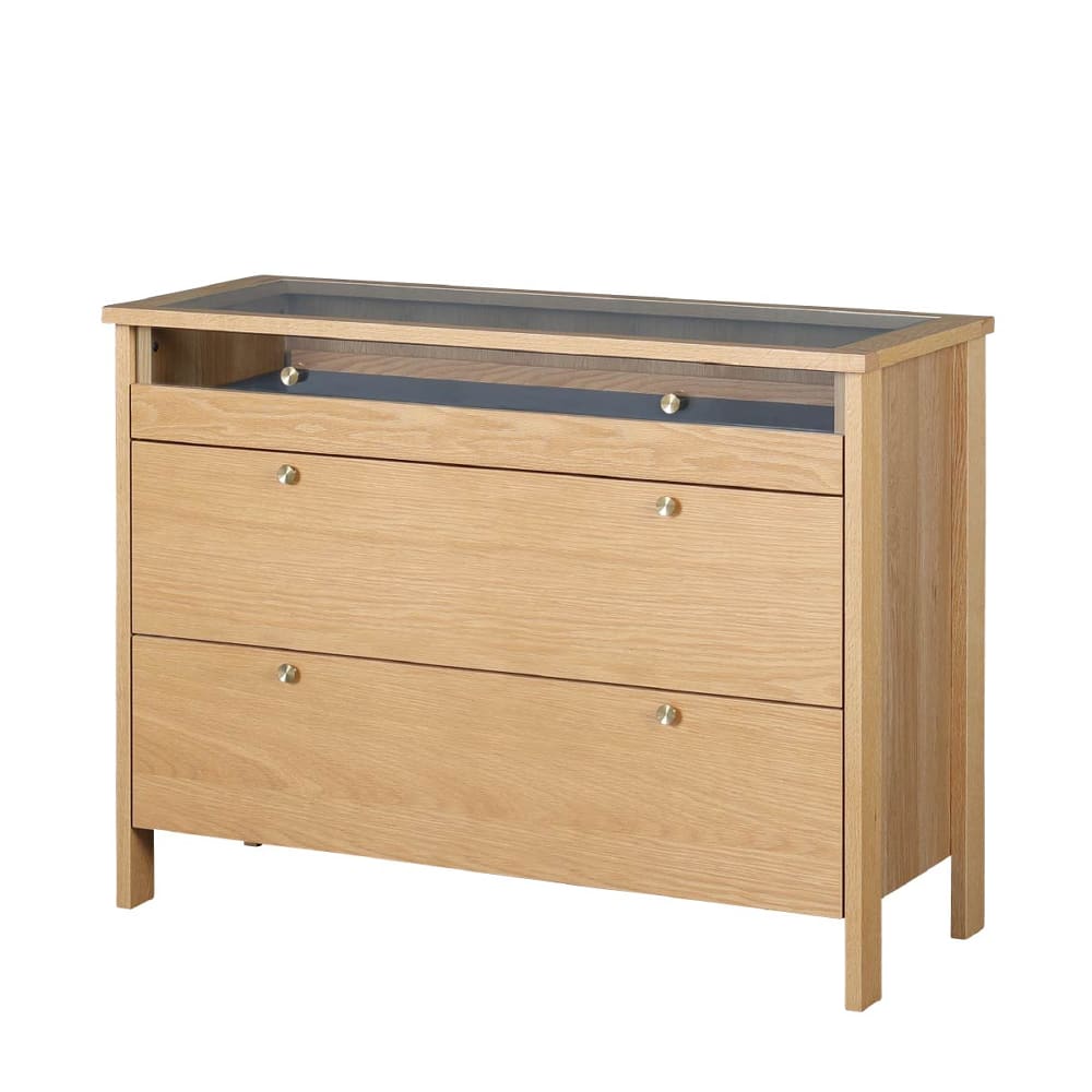 ◆大切な物を収めるリビングチェスト◆脚には無垢材を、取手には真鍮を用いています。