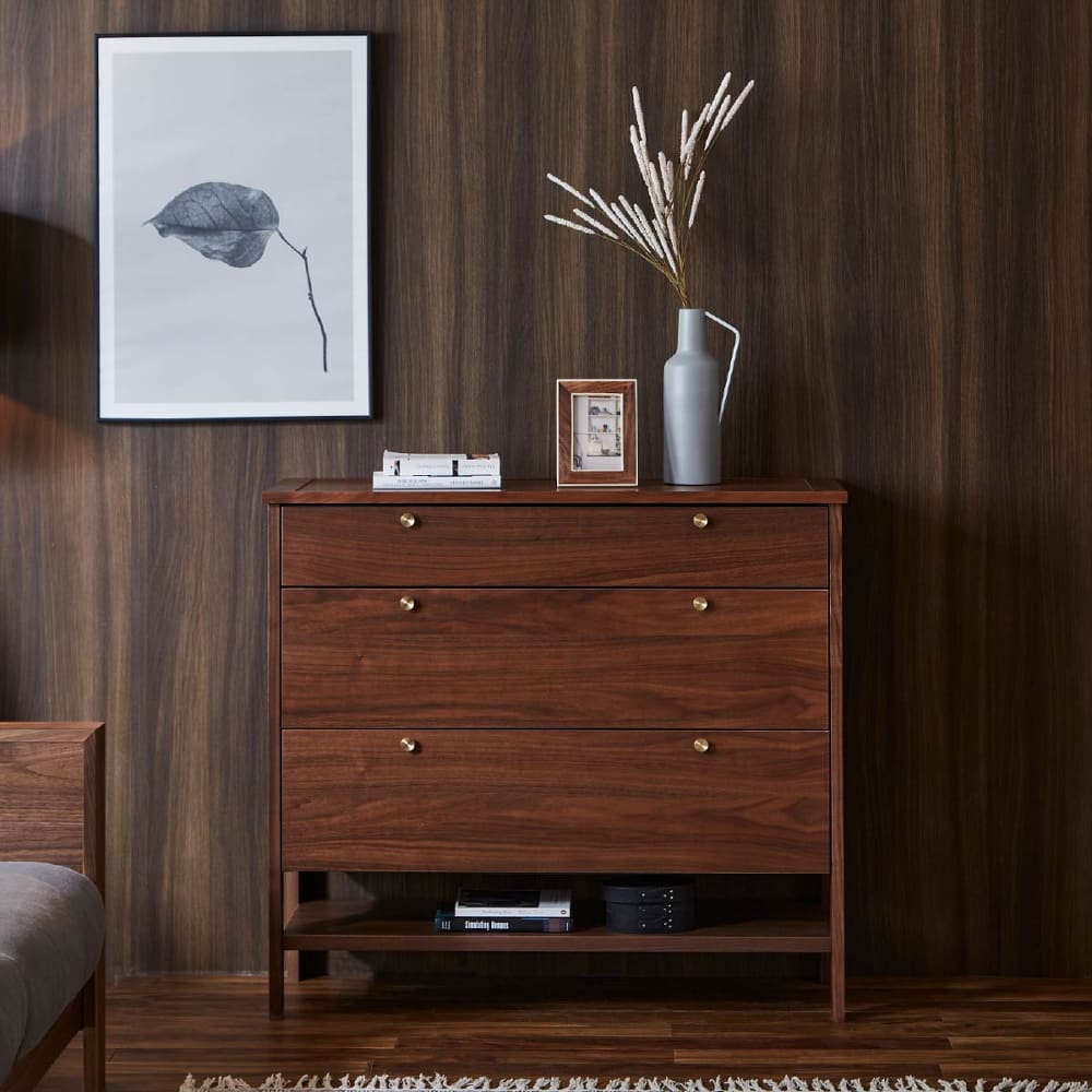 ◆大切な物を収めるリビングチェスト◆脚には無垢材を、取手には真鍮を用いています。