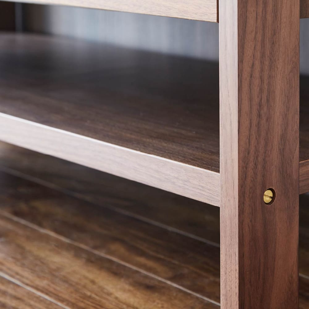 ◆脚と天板枠の部分に無垢材を採用し、本体は突板で仕上げております。※棚板部分はプリント紙
