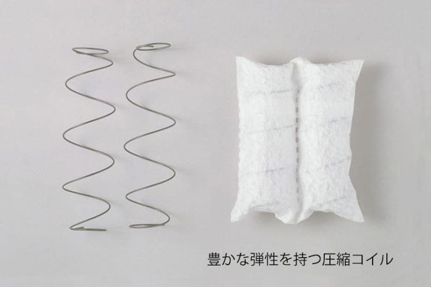 ■バネを袋に包んで連結するポケットコイルは、1つ1つのバネが独立して動き、体の形に合わせてフィットします。