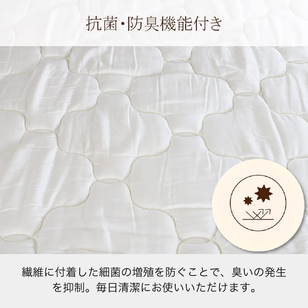 表面に、シルクのような肌ざわりの、天然繊維リヨセルを使用。吸湿発散性に優れており、シワや洗濯後の縮みも少ないのが特長です。