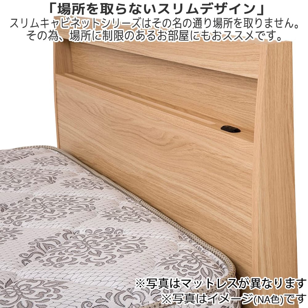 ■ヘッドボードは、通常のキャビネットタイプよりスリムなのに、小物も置ける便利なスリムシェルフタイプ。
