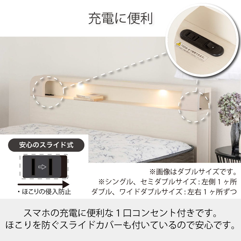 ◆LED照明採用。スライドコンセント付(ダブル以上は照明・コンセントともに2ヶとなります)