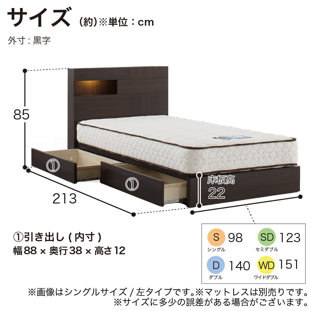 [ドリームベッド]セミダブルフレーム ウレルディ2754 引出付き 220H 右タイプ