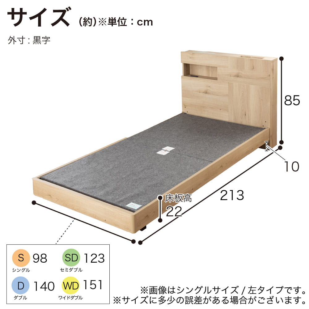 - ・ サイズ:シングル、 タイプ:脚付/床板高22/左タイプ、 カラー:TRO