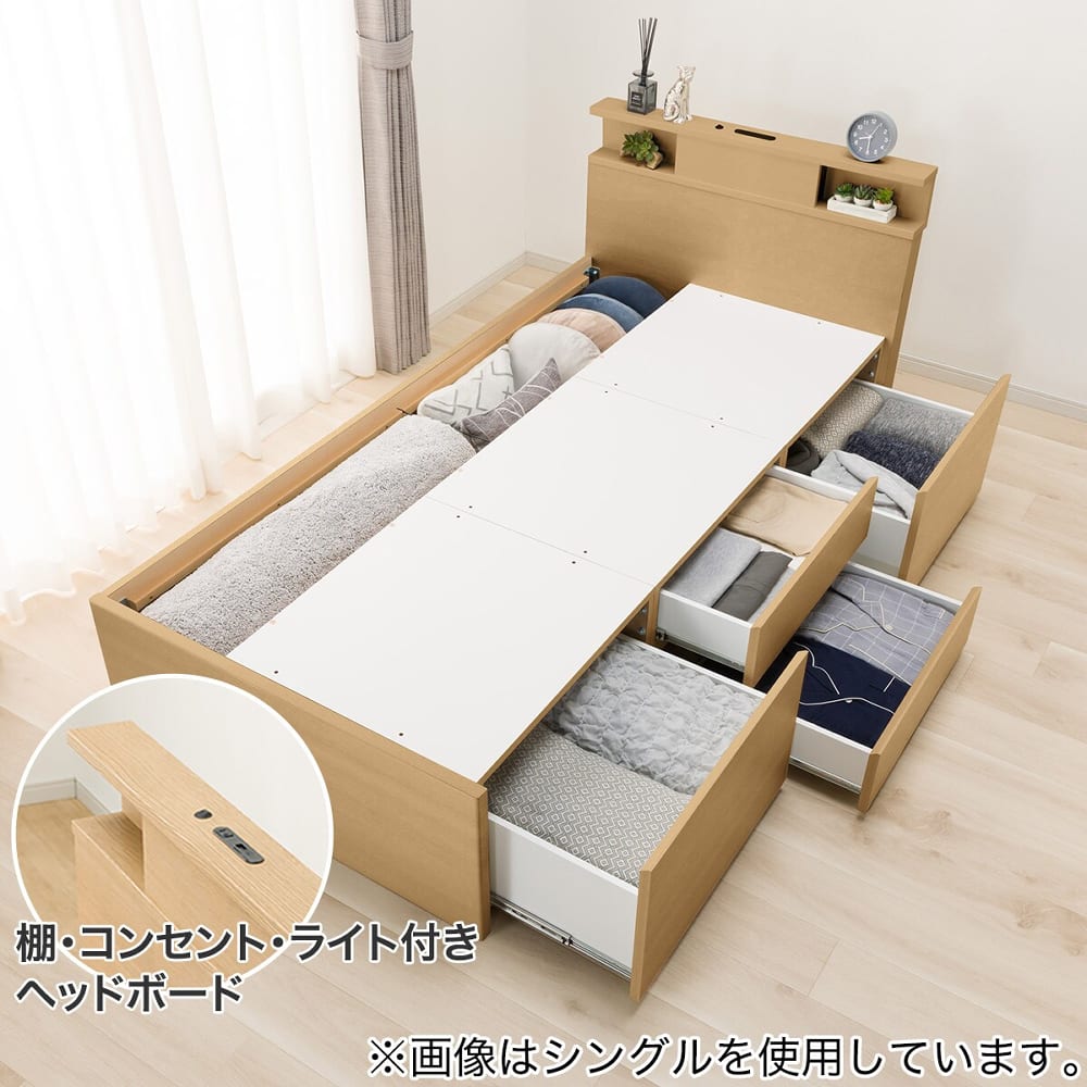 展示している商品はこちら- ・ サイズ:シングル、 タイプ:フラット/通常引き出し、 カラー:ライトブラウン