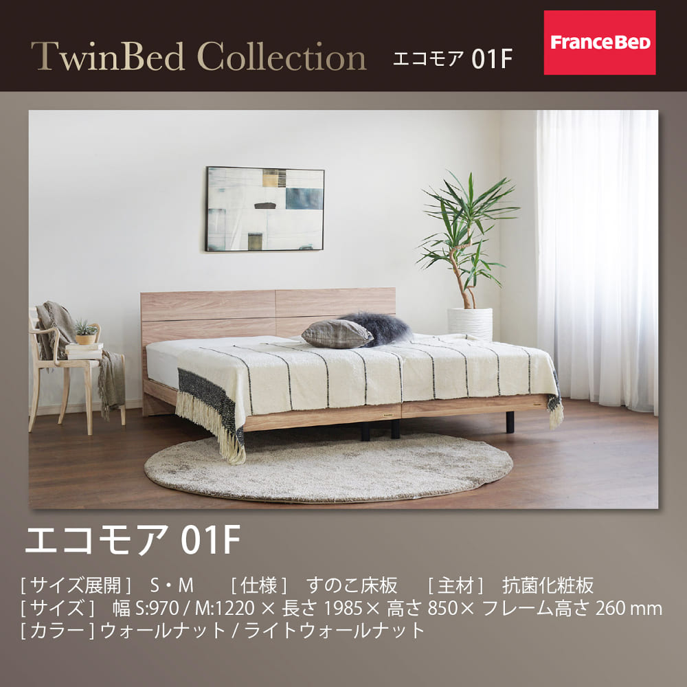[フランスベッド]シングルセミダブルツインベッド エコモア01F引き出し付/ハイジェニックプレミアムPW KLW