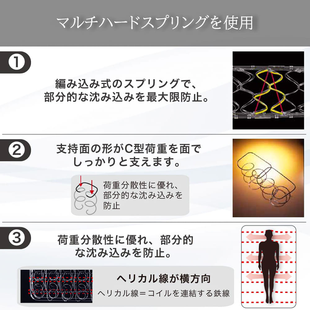 ◆マットレスは高密度連続スプリングですので、耐久性・耐圧分散性・通気性に非常に優れております。