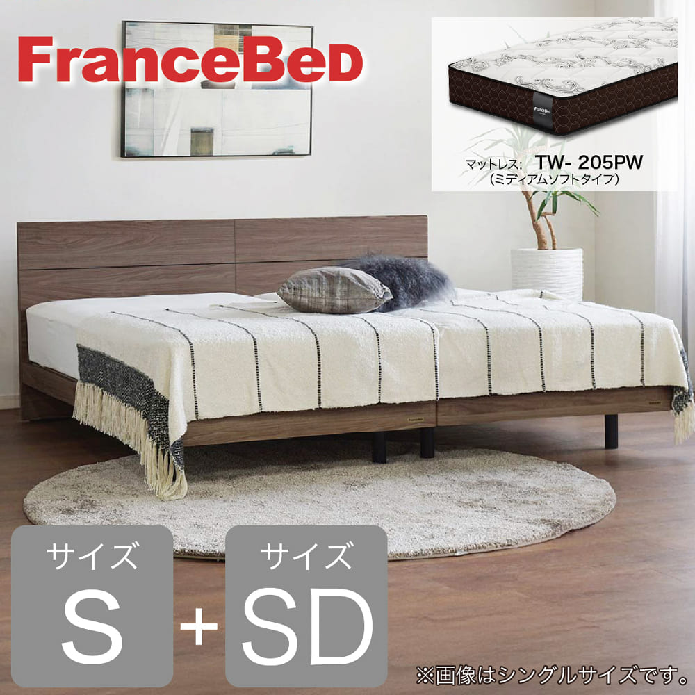 [フランスベッド] シングルセミダブルツインベッド エコモア01F 脚付 TW−205PW ウォールナット