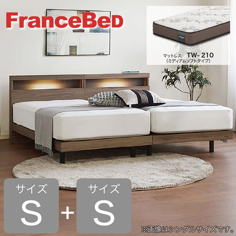 [フランスベッド] シングルツインベッド エコモア02C 脚付 TW−210 ウォールナット