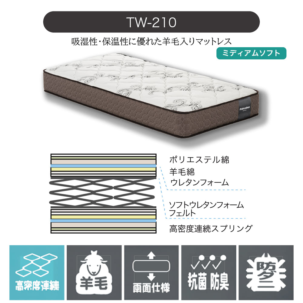 [フランスベッド] シングルセミダブルツインベッド エコモア02C 脚付 TW−210 ライトウォールナット