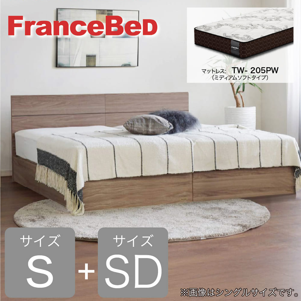 [フランスベッド] シングルセミダブルツインベッド エコモア01F 引出付 TW−205PW ウォールナット