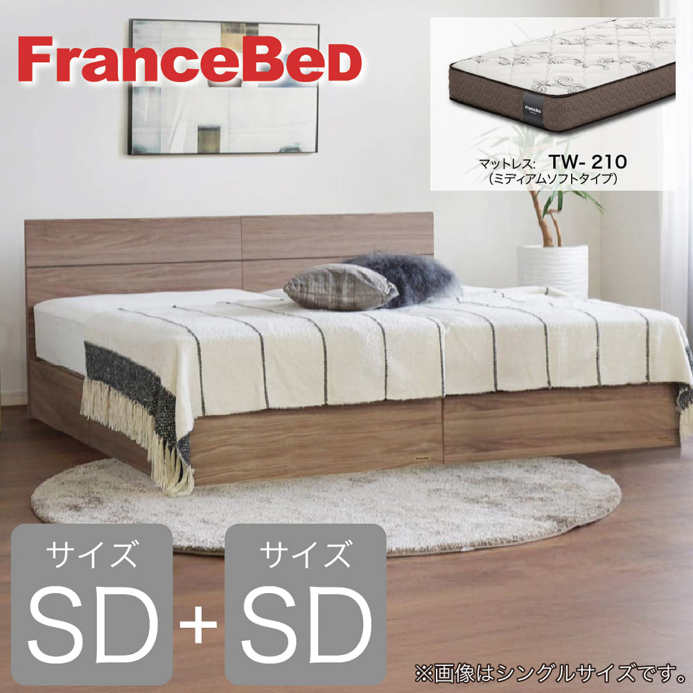 [フランスベッド] セミダブルツインベッド エコモア01F 引出付 TW−210 ウォールナット