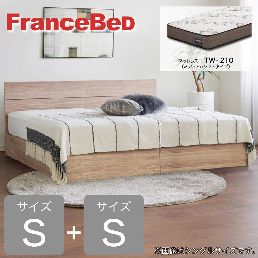 [フランスベッド] シングルツインベッド エコモア01F 引出付 TW−210 ライトウォールナット